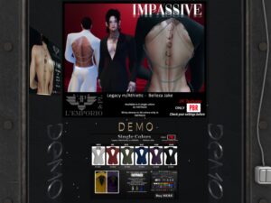 Featuring: Accessories, Animals/Pets/Companions, Animations/Poses/Props, Avatar Components, Avatar Enhancements, Builds, Clothing, Cosmetics/Nails, Footwear, Hairs, Home and Garden, Shapes, Skins, Tattoos