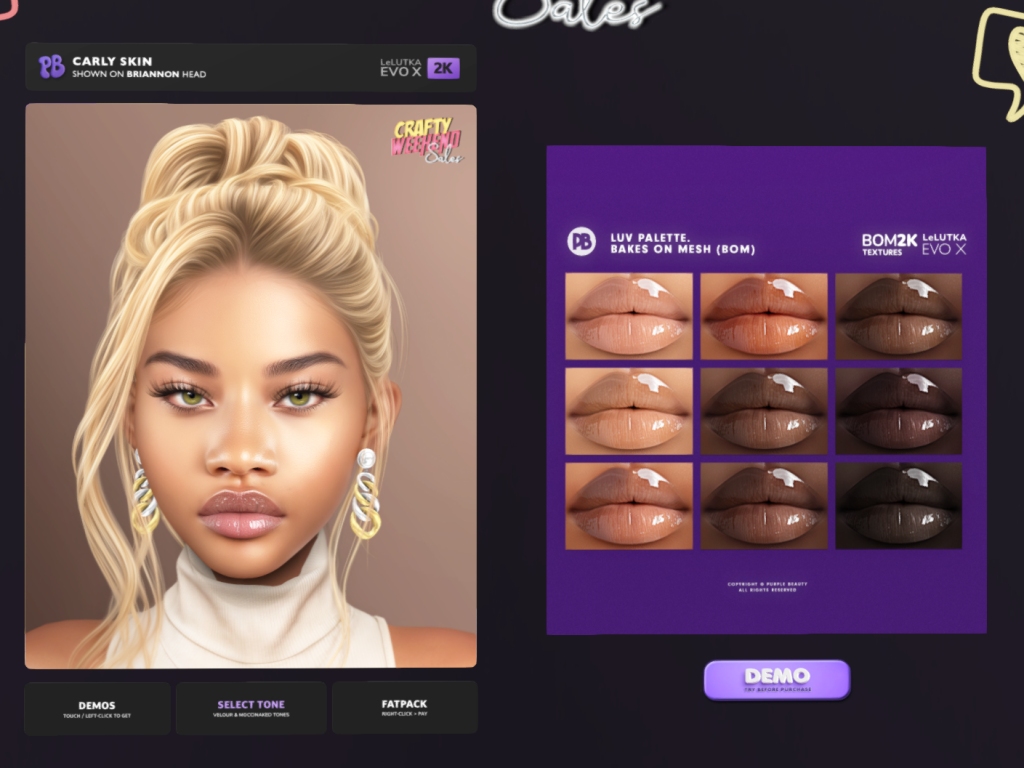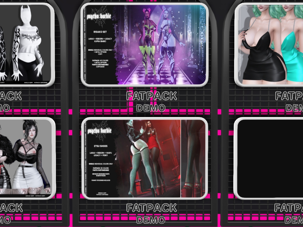 Featuring: Accessories, Animations/Poses/Props, Avatar Components, Avatar Enhancements, Builds, Clothing, Cosmetics/Nails, Footwear, Hairs, Home and Garden, Skins, Tattoos, Vehicles