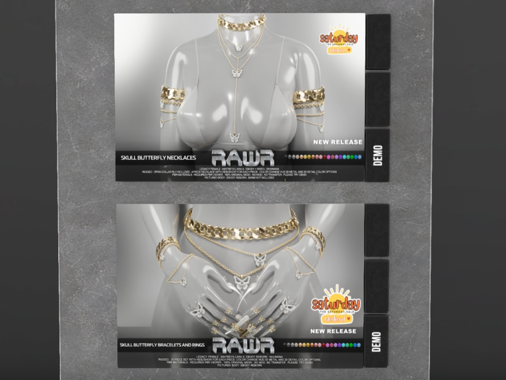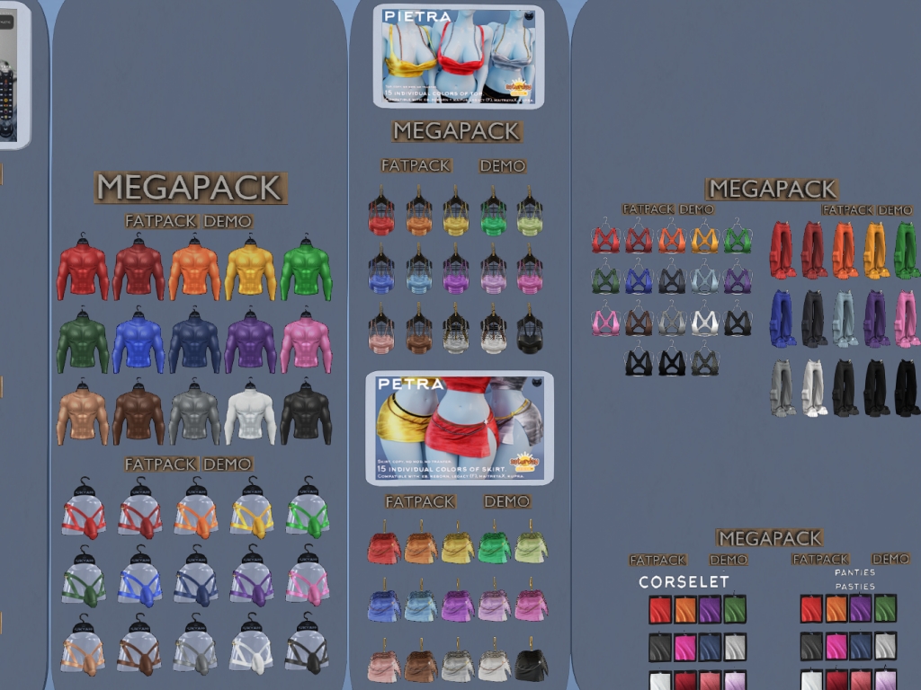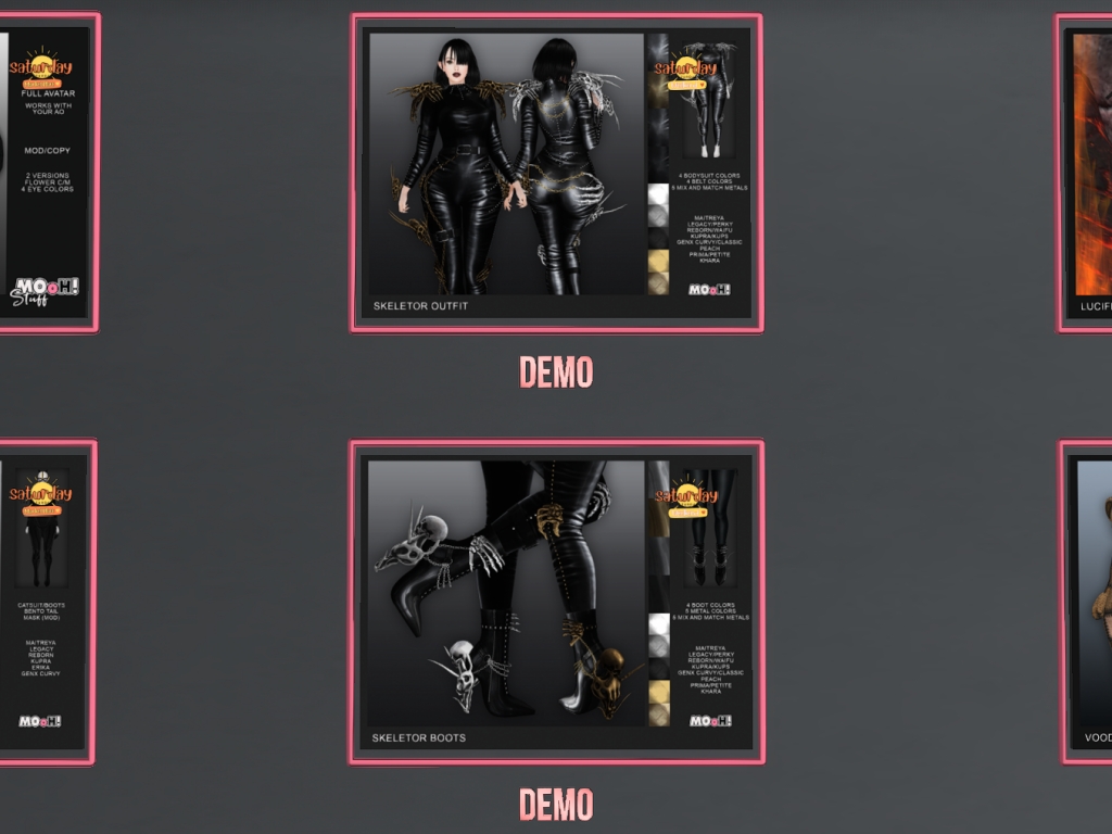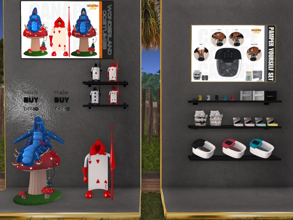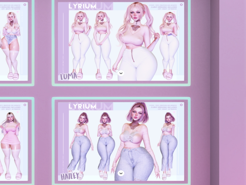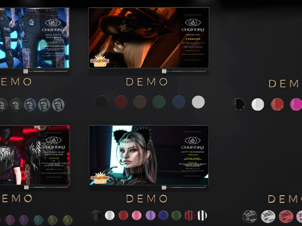 Featuring: Accessories, Animations/Poses/Props, Avatar Components, Avatar Enhancements, Builds, Clothing, Cosmetics/Nails, Hairs, Home and Garden, Skins, Tattoos, Vehicles