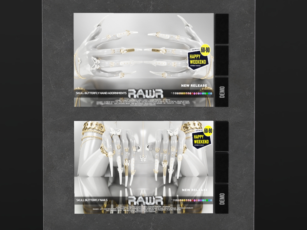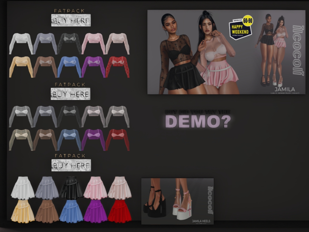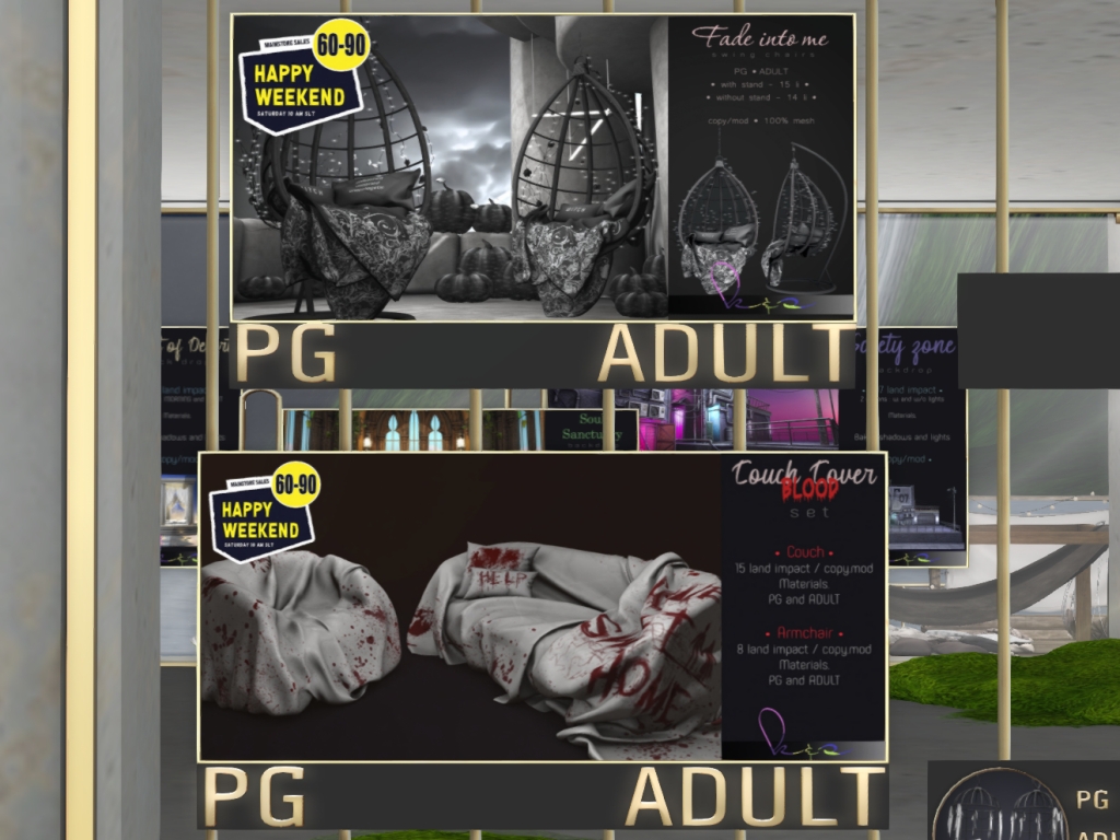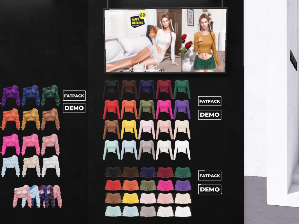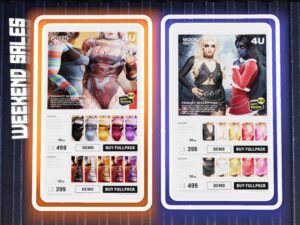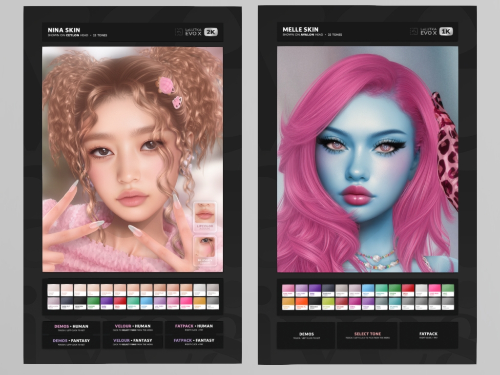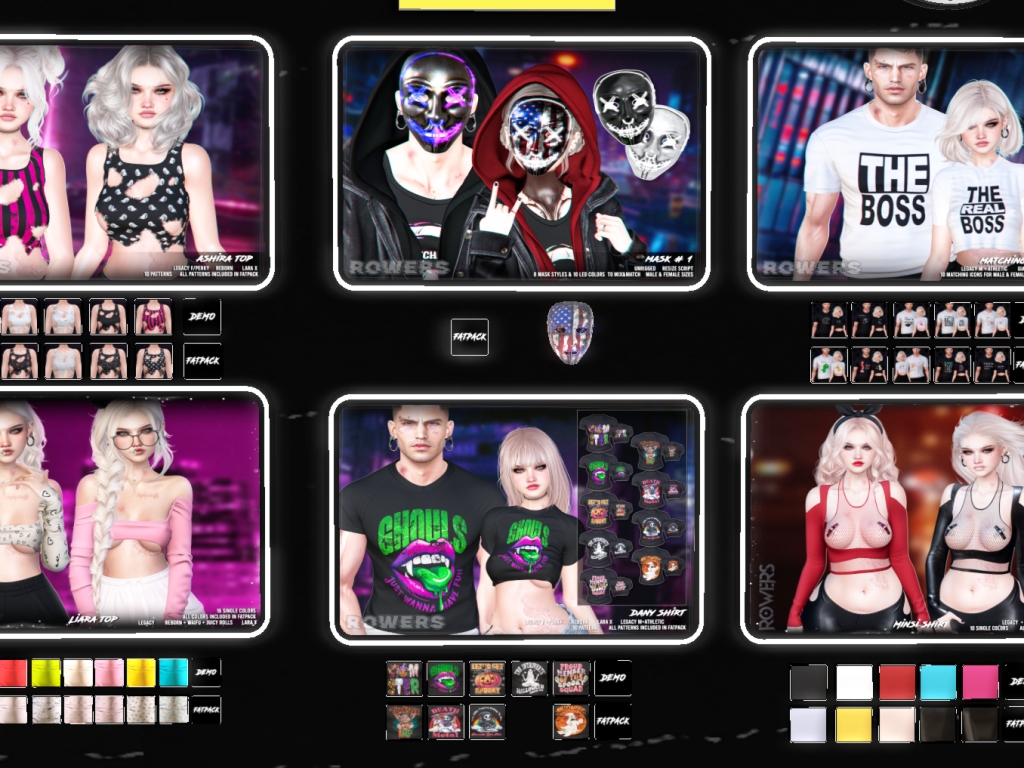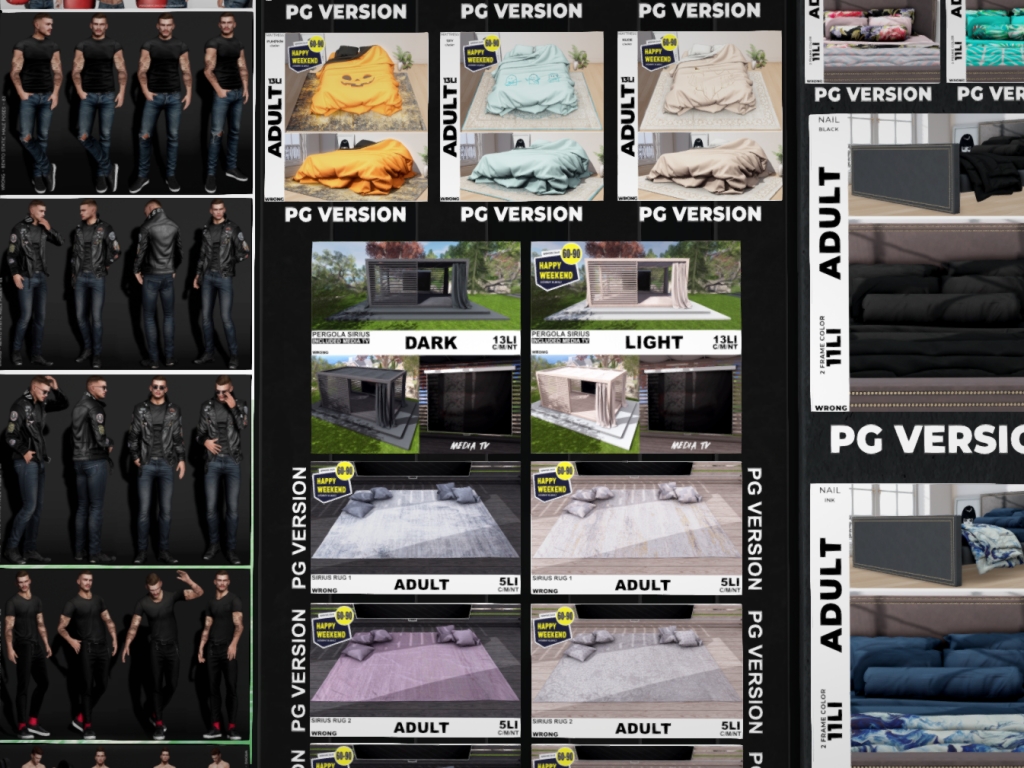 Featuring: Accessories, Animations/Poses/Props, Avatar Components, Avatar Enhancements, Builds, Clothing, Cosmetics/Nails, Footwear, Hairs, Home and Garden, Skins, Tattoos, Vehicles