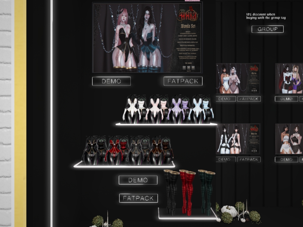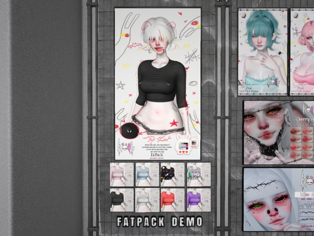 Featuring: Accessories, Animations/Poses/Props, Avatar Components, Avatar Enhancements, Clothing, Cosmetics/Nails, Footwear, Home and Garden, HUDs, Shapes, Skins, Tattoos