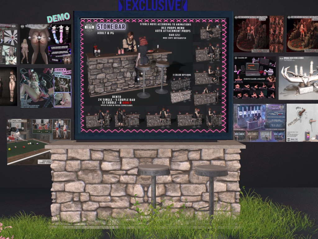Featuring: Accessories, Animals/Pets/Companions, Animations/Poses/Props, Avatar Enhancements, Builds, Clothing, Footwear, Home and Garden, Tattoos