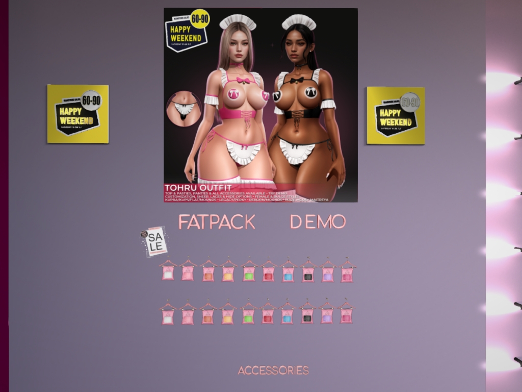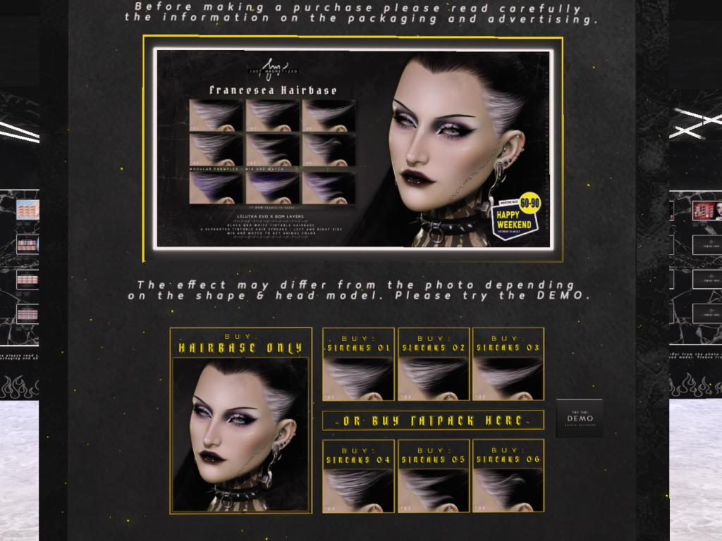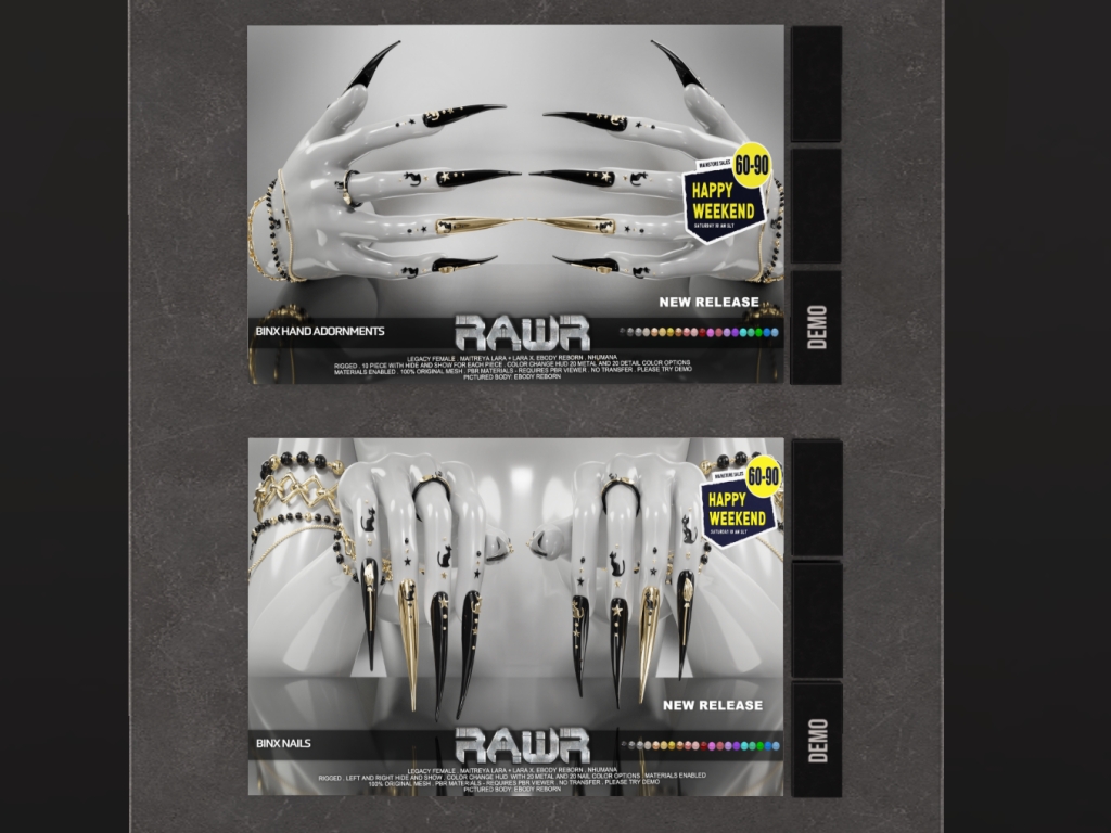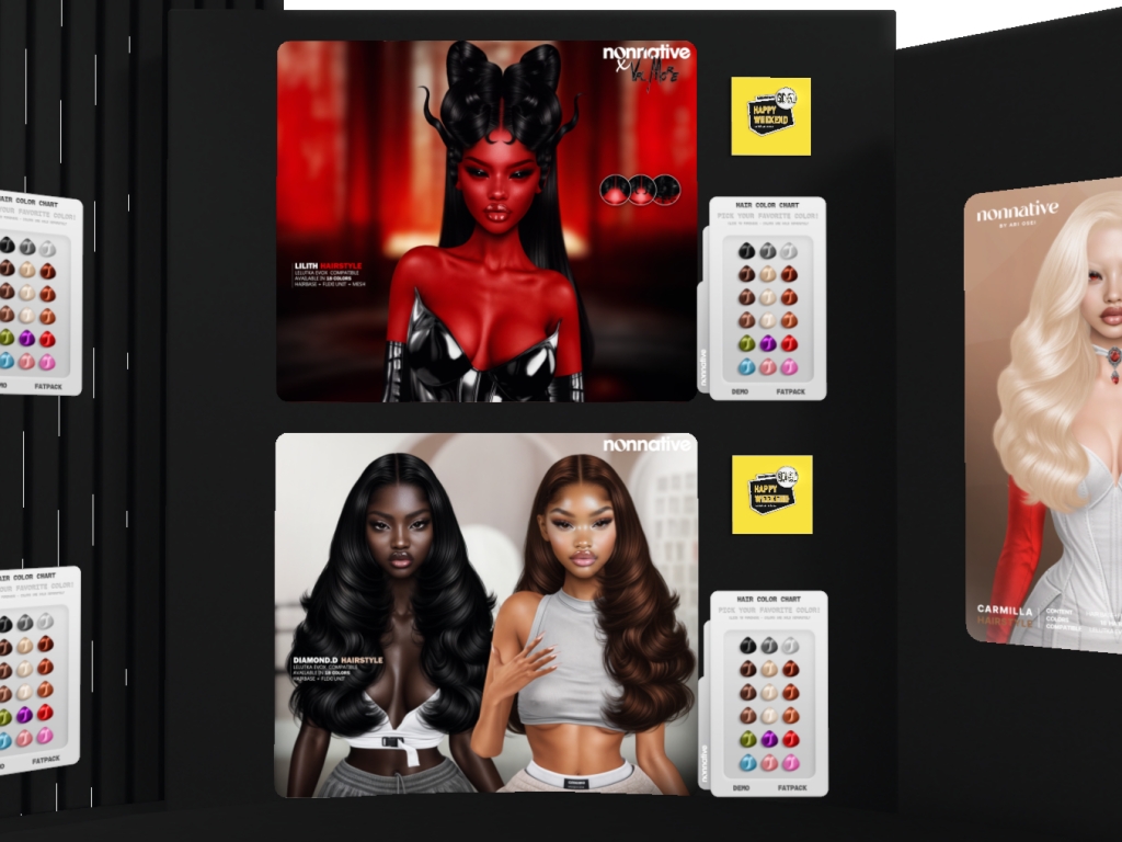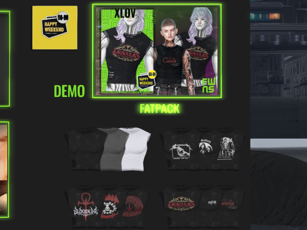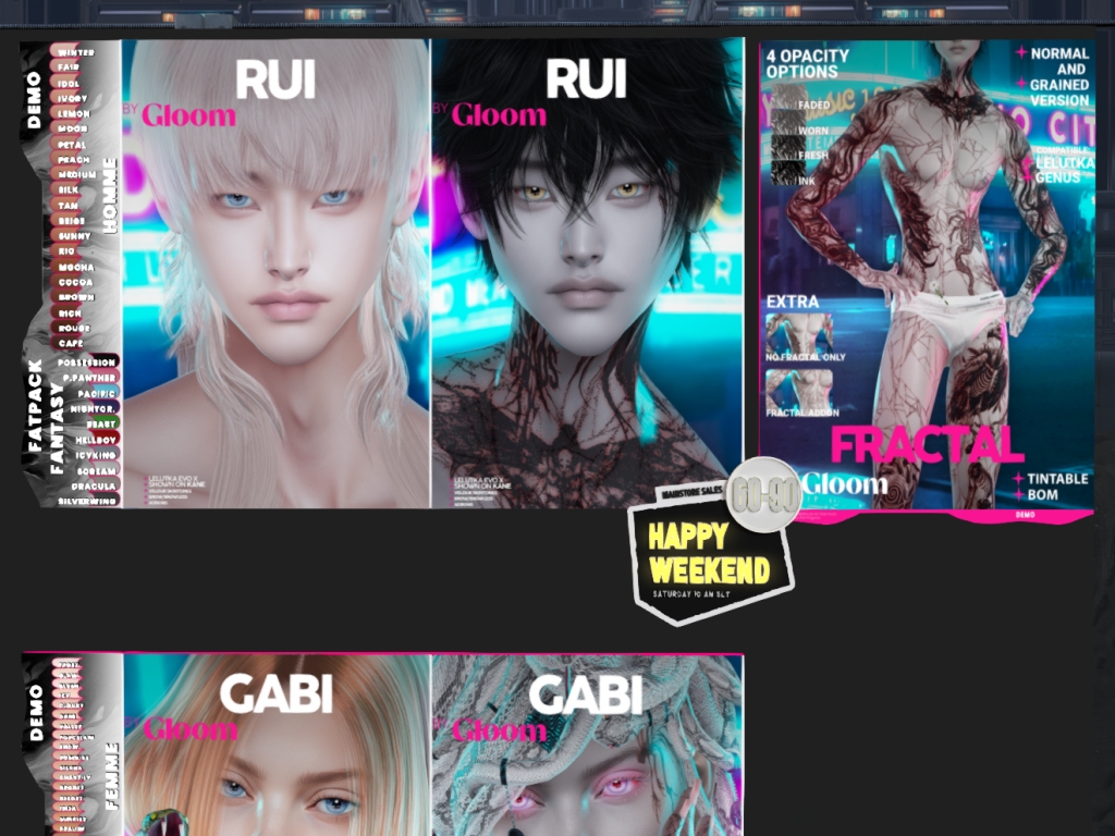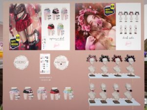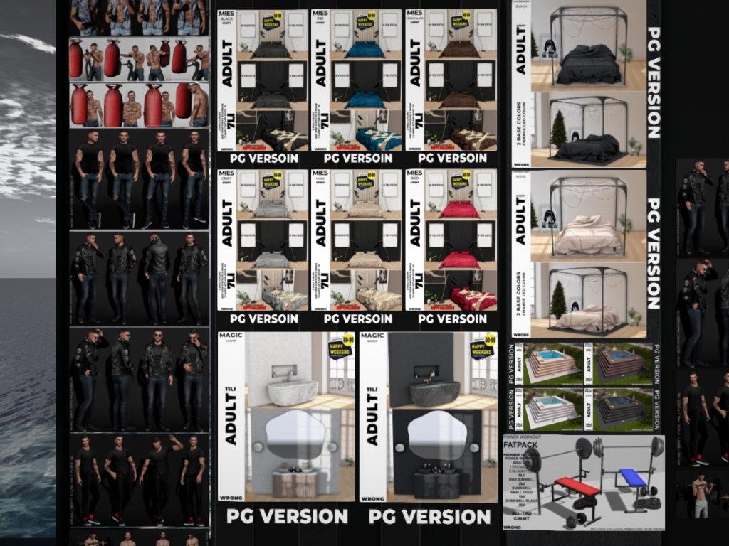 Featuring: Accessories, Animations/Poses/Props, Avatar Components, Avatar Enhancements, Builds, Clothing, Cosmetics/Nails, Footwear, Hairs, Home and Garden, Skins, Tattoos, Vehicles
