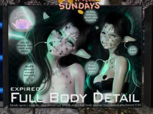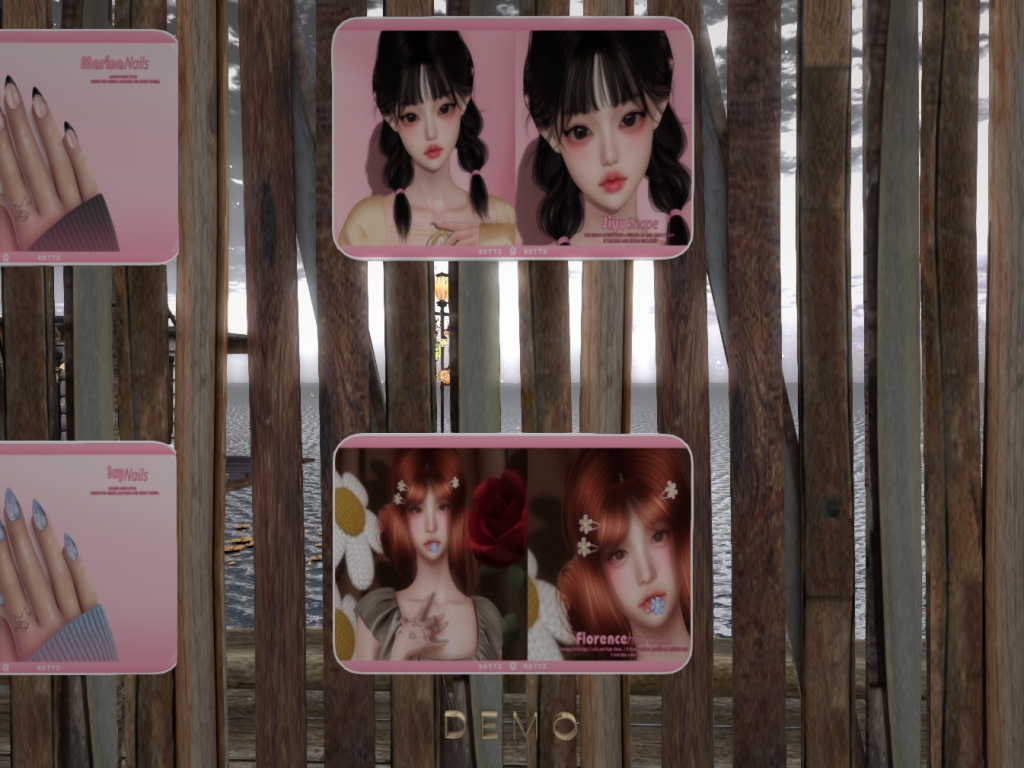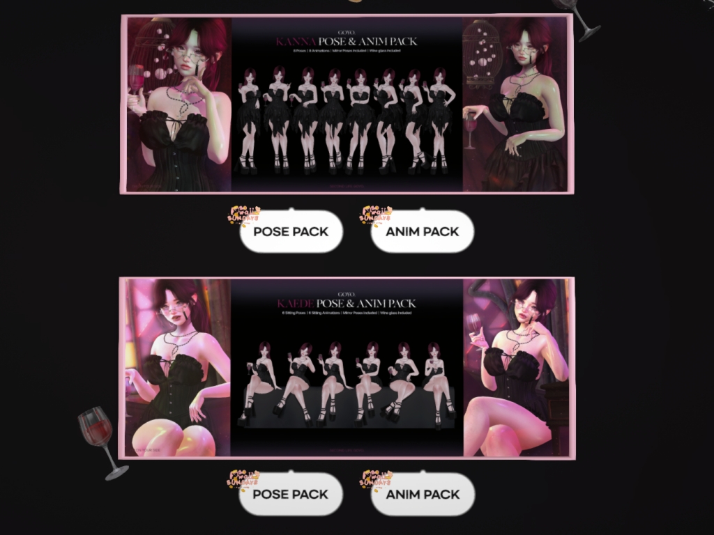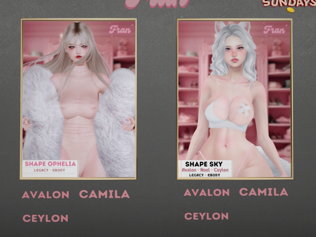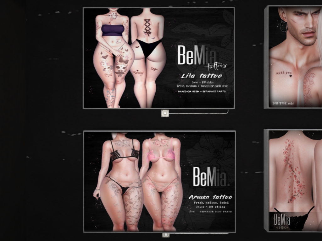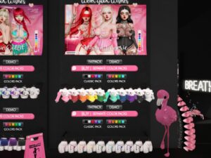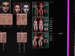 Featuring: Accessories, Animations/Poses/Props, Avatar Components, Avatar Enhancements, Builds, Clothing, Cosmetics/Nails, Footwear, Hairs, Home and Garden, Shapes, Skins, Tattoos