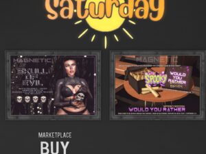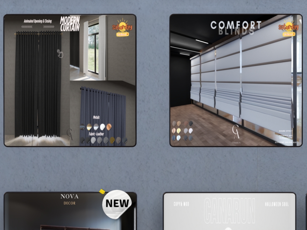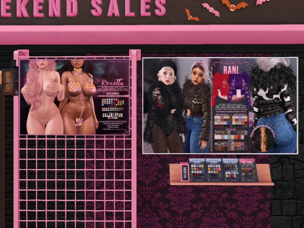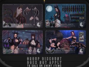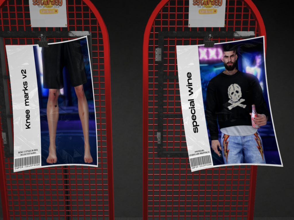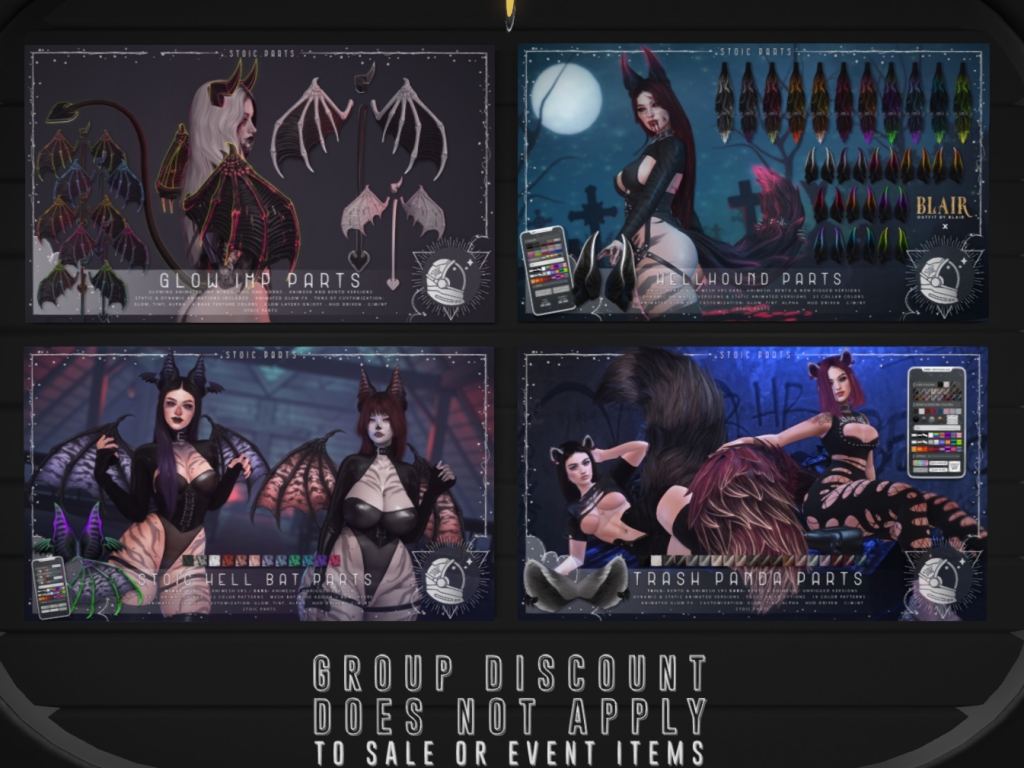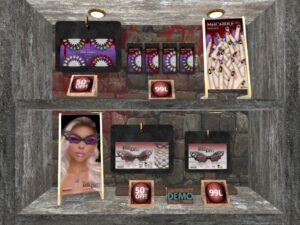 Featuring: Accessories, Animations/Poses/Props, Avatar Components, Avatar Enhancements, Builds, Clothing, Cosmetics/Nails, Hairs, Home and Garden, Skins, Tattoos, Vehicles