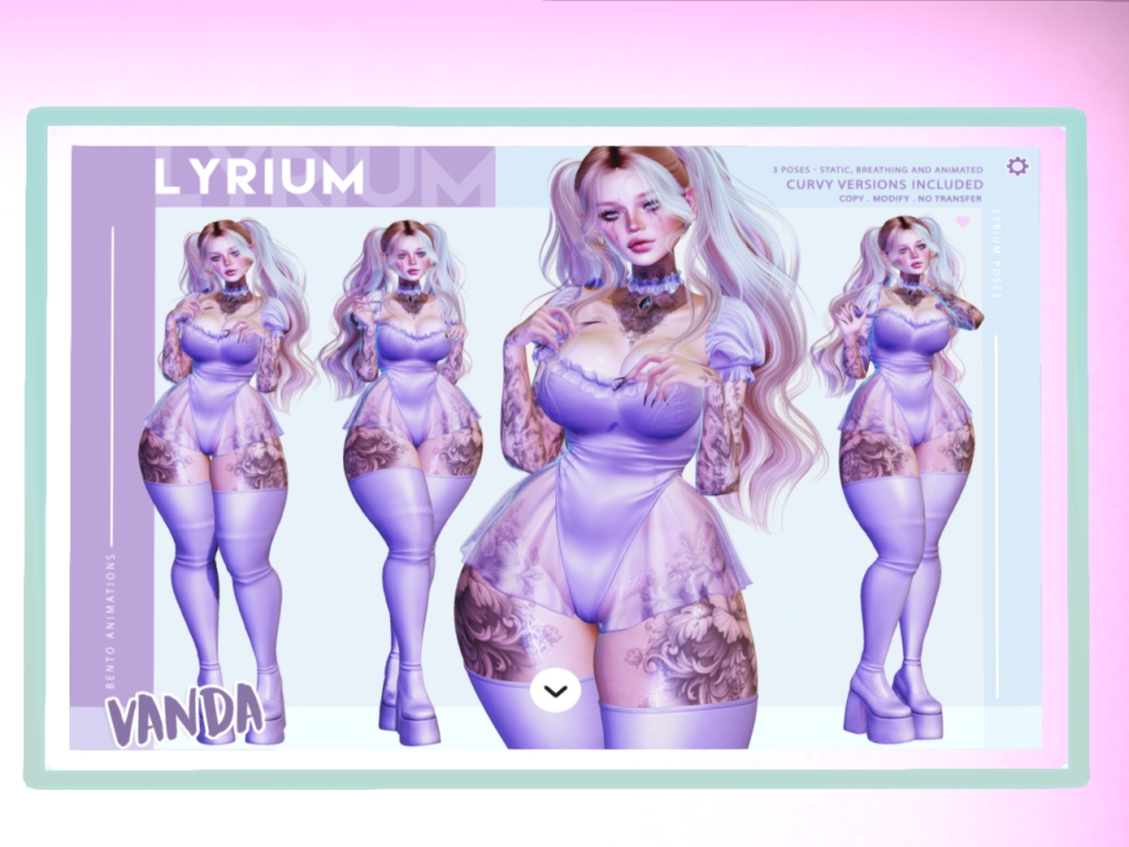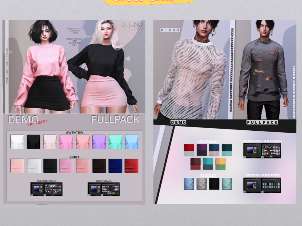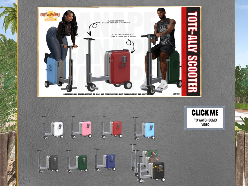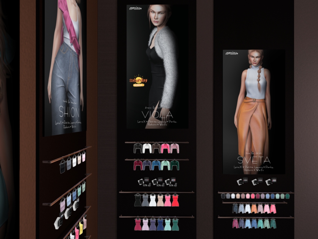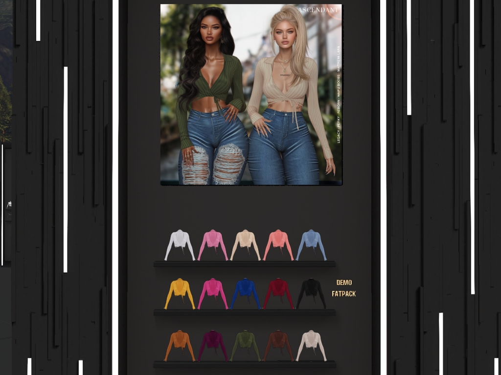 Featuring: Accessories, Animations/Poses/Props, Avatar Components, Avatar Enhancements, Builds, Clothing, Cosmetics/Nails, Hairs, Home and Garden, Skins, Tattoos, Vehicles