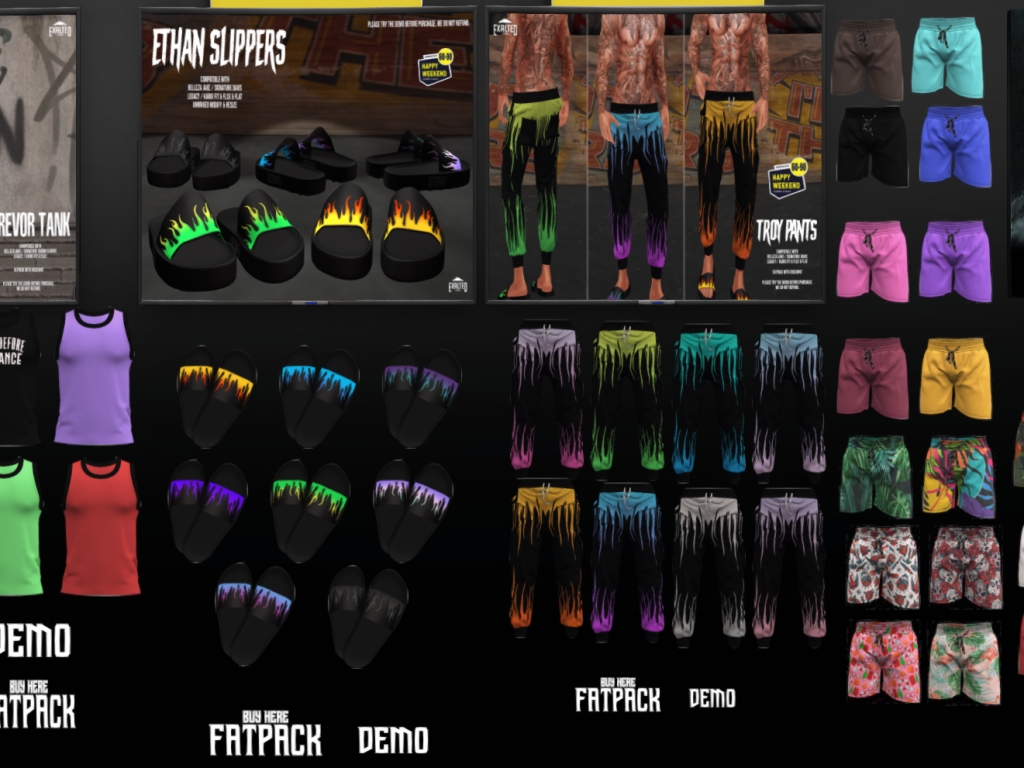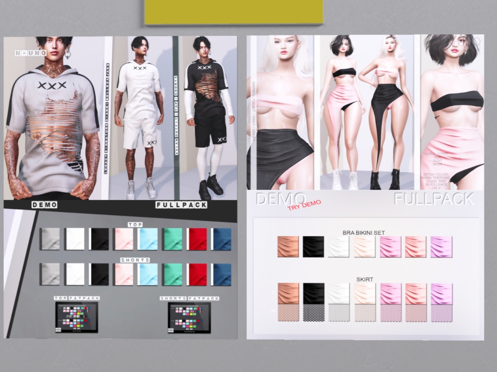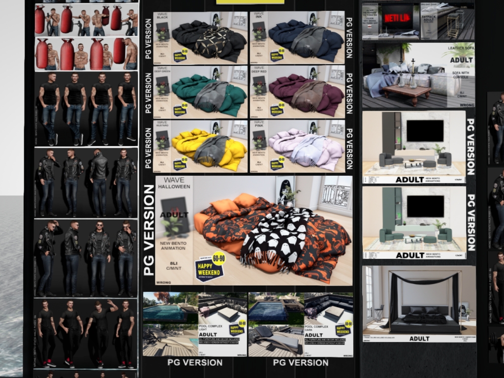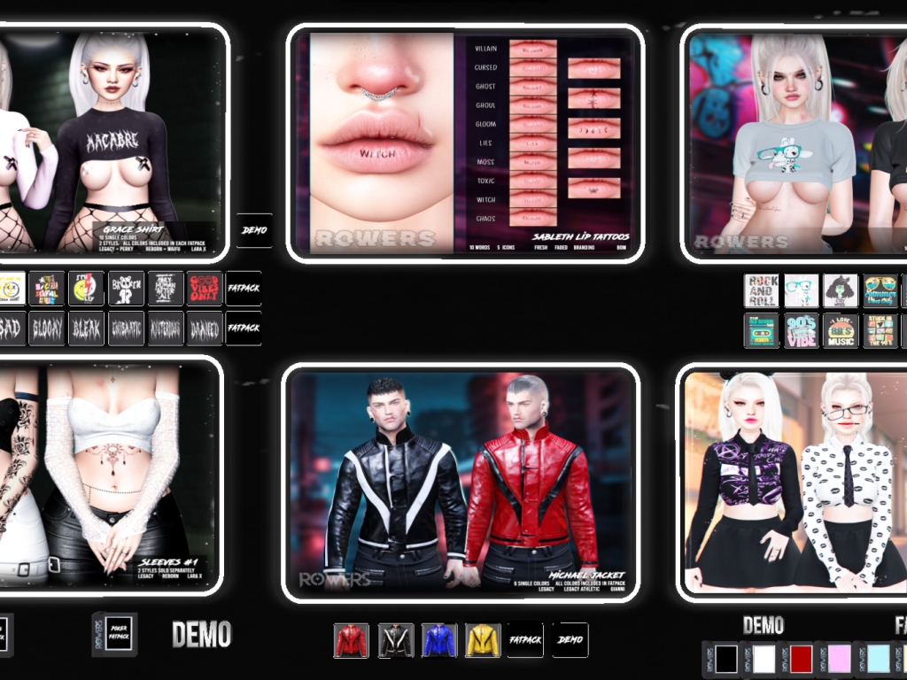 Featuring: Accessories, Animations/Poses/Props, Avatar Components, Avatar Enhancements, Builds, Clothing, Cosmetics/Nails, Footwear, Hairs, Home and Garden, Skins, Tattoos, Vehicles