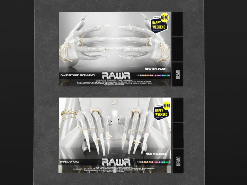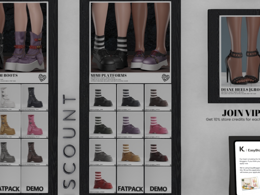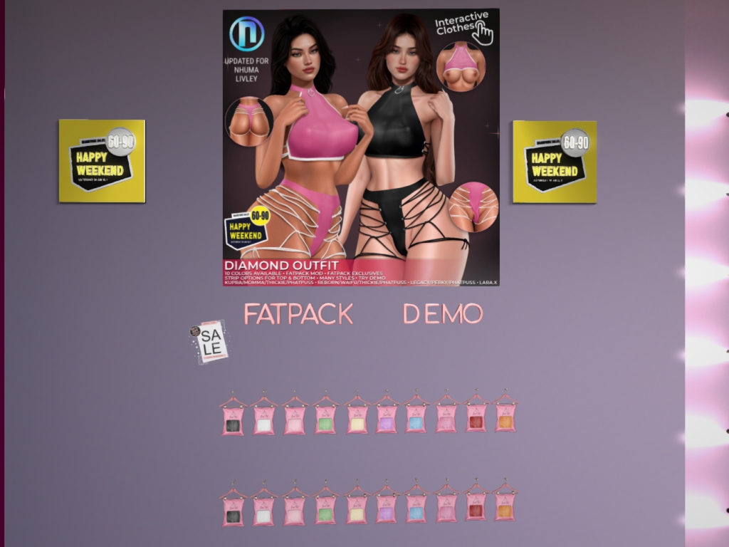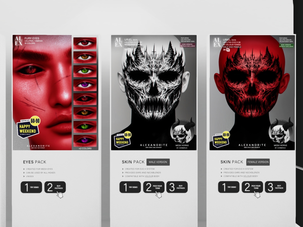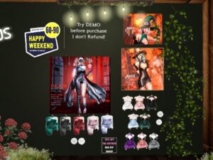 Featuring: Accessories, Animations/Poses/Props, Avatar Components, Avatar Enhancements, Builds, Clothing, Cosmetics/Nails, Footwear, Hairs, Home and Garden, Skins, Tattoos, Vehicles