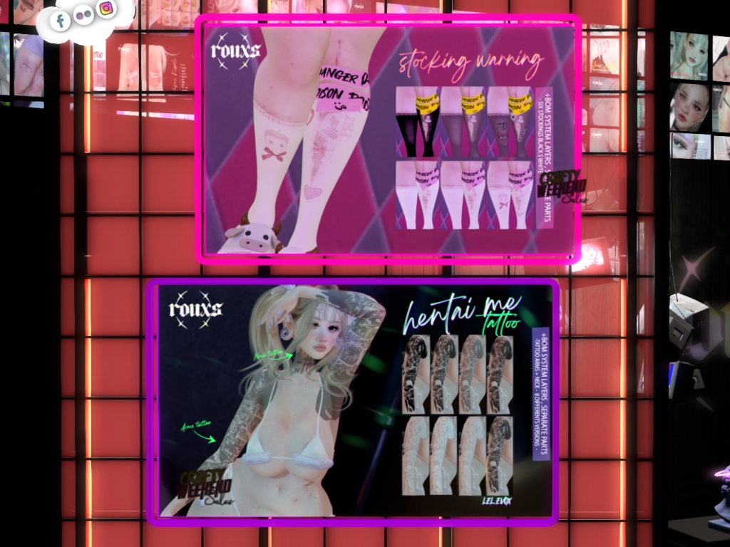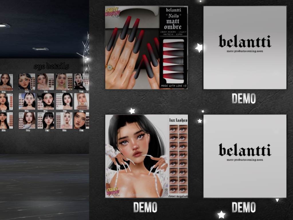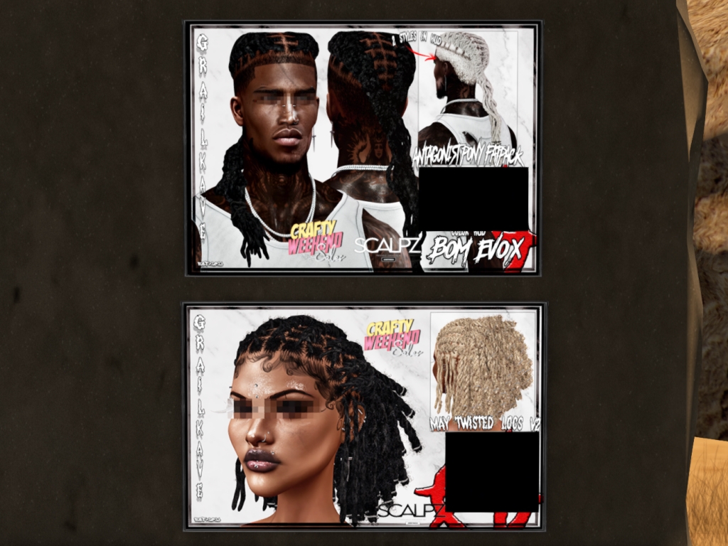 Featuring: Accessories, Animations/Poses/Props, Avatar Components, Avatar Enhancements, Builds, Clothing, Cosmetics/Nails, Footwear, Hairs, Home and Garden, Skins, Tattoos, Vehicles