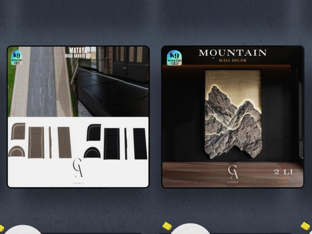 Featuring: Accessories, Animations/Poses/Props, Avatar Enhancements, Builds, Clothing, Hairs, Home and Garden, Skins, Vehicles