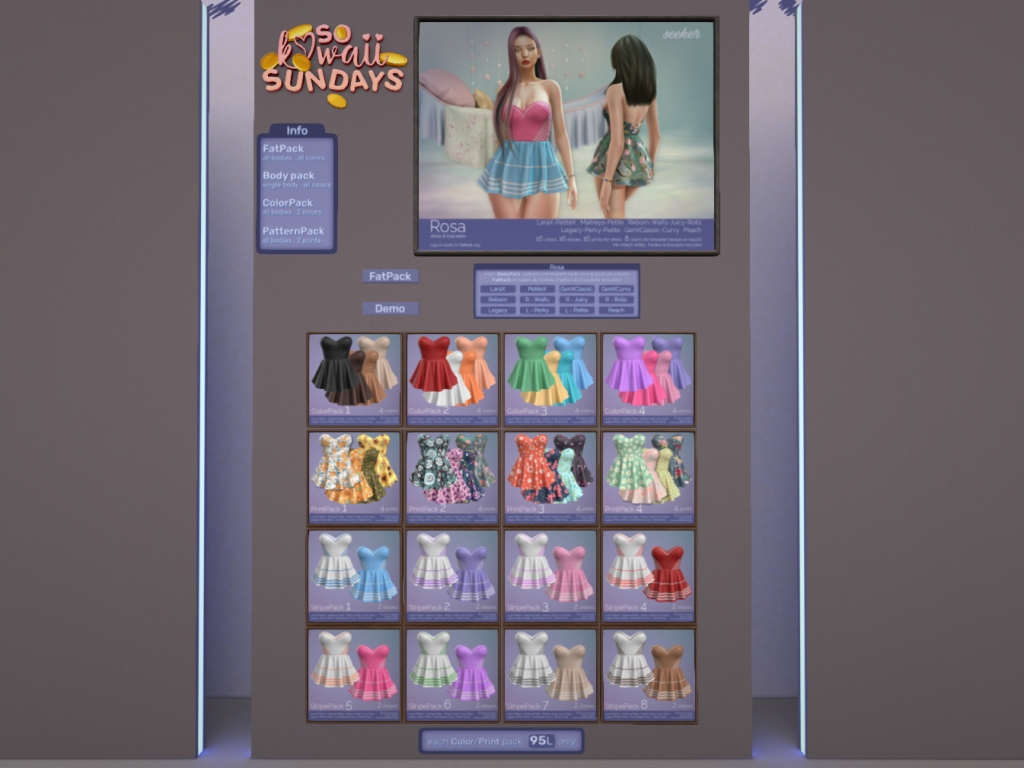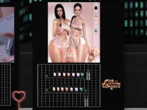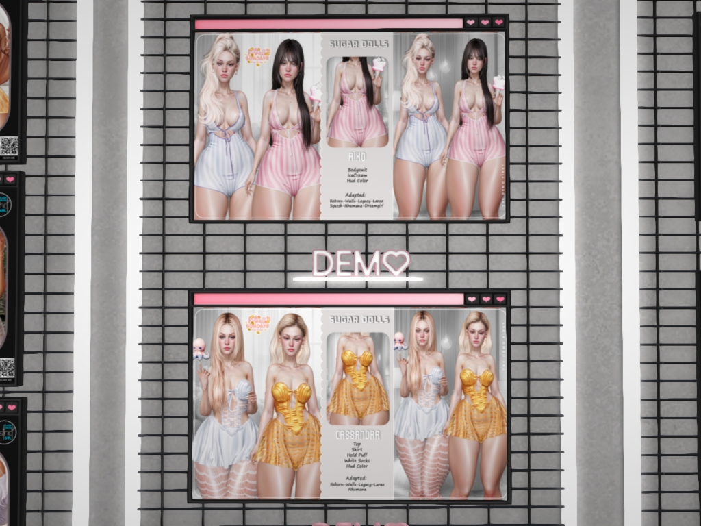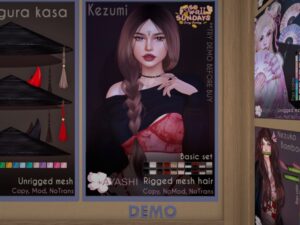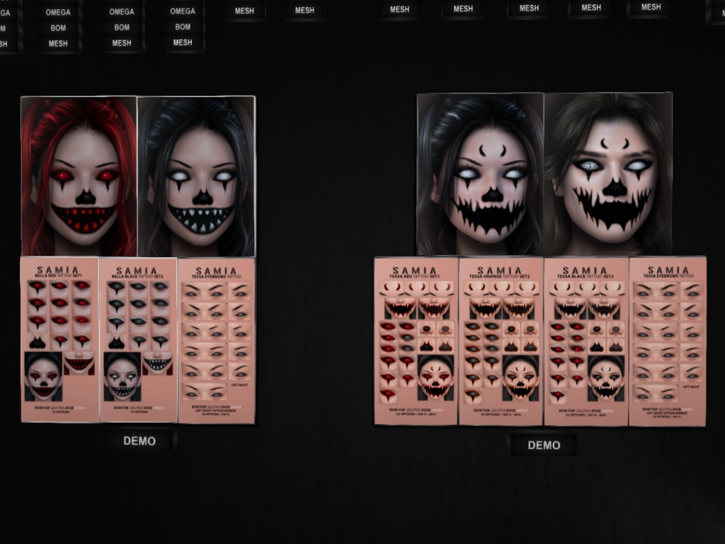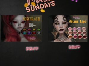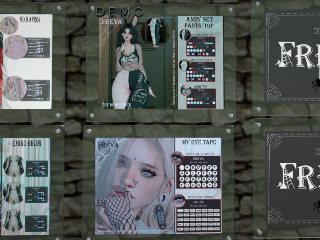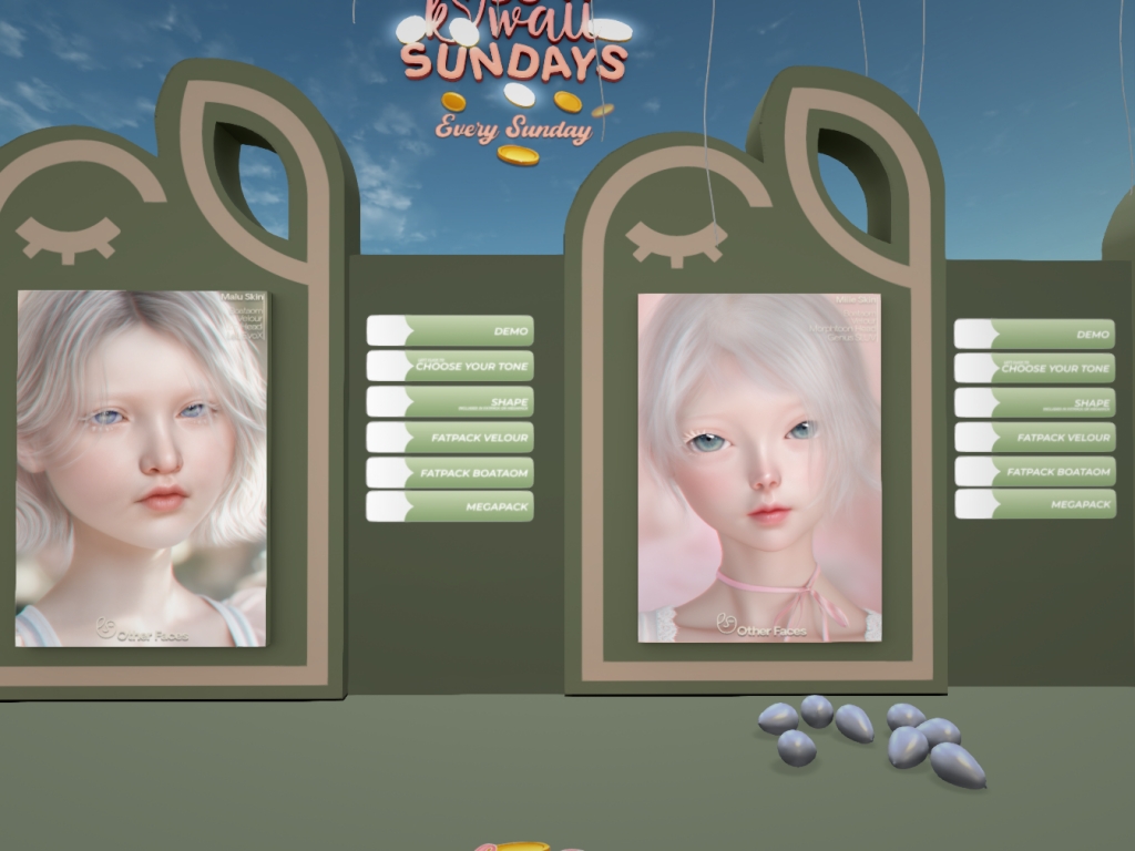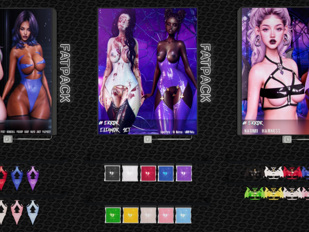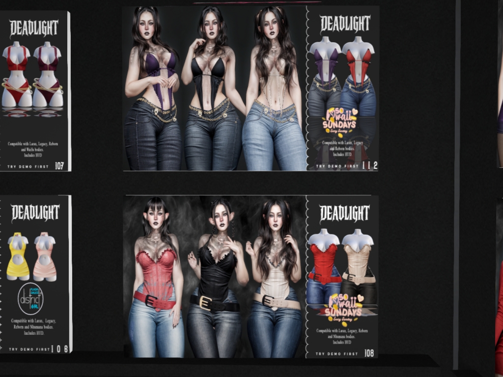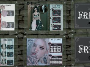 Featuring: Accessories, Animations/Poses/Props, Avatar Components, Avatar Enhancements, Builds, Clothing, Cosmetics/Nails, Footwear, Hairs, Home and Garden, Shapes, Skins, Tattoos