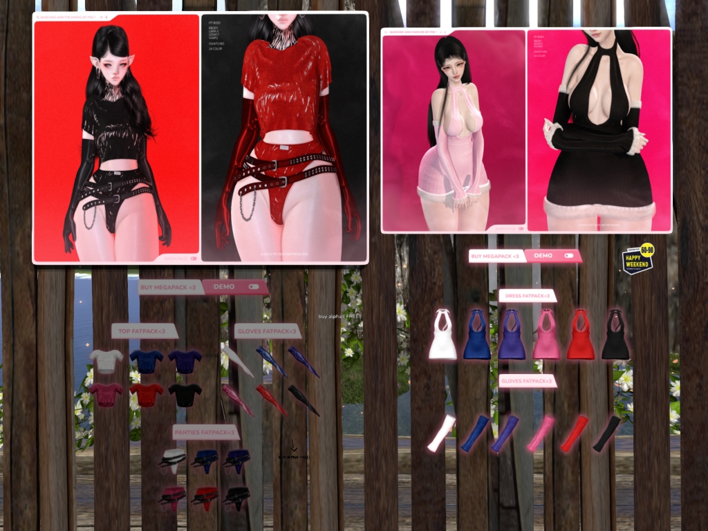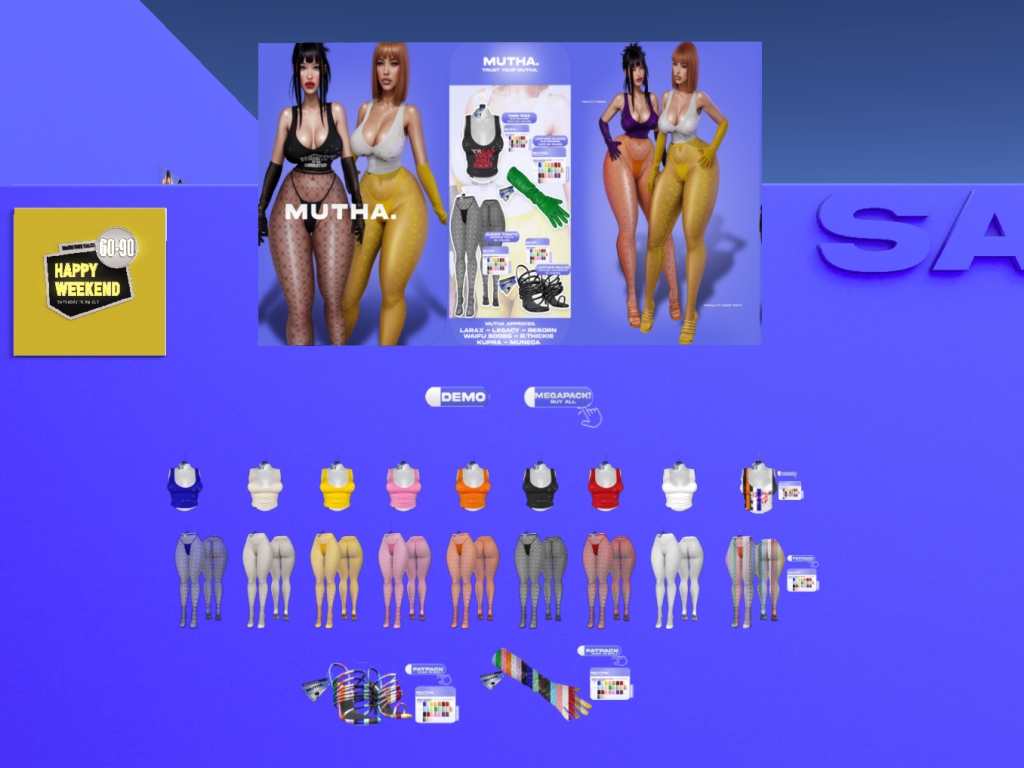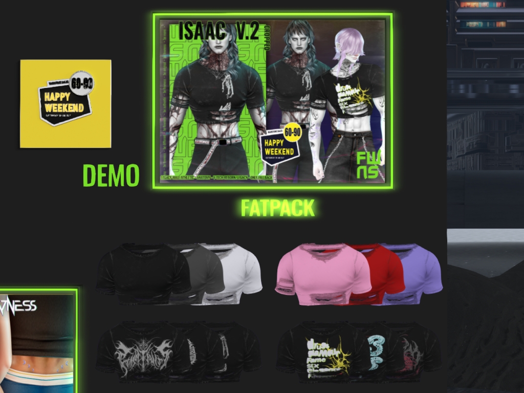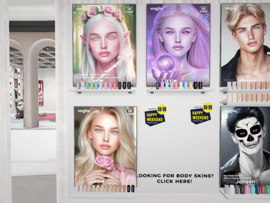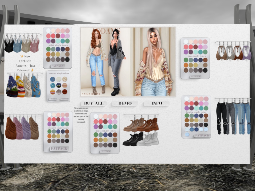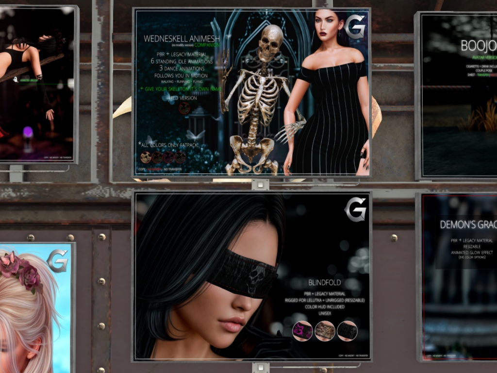 Featuring: Accessories, Animations/Poses/Props, Avatar Components, Avatar Enhancements, Builds, Clothing, Cosmetics/Nails, Footwear, Hairs, Home and Garden, Skins, Tattoos, Vehicles