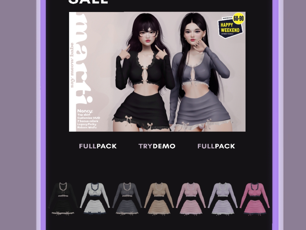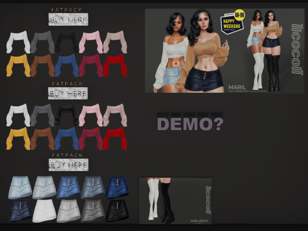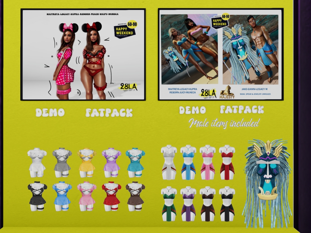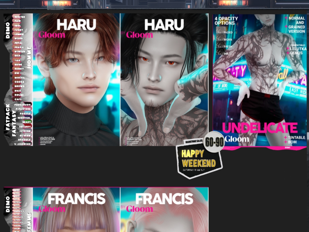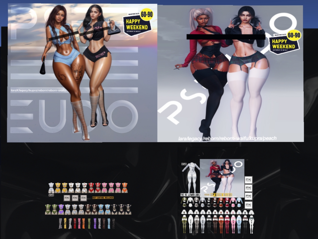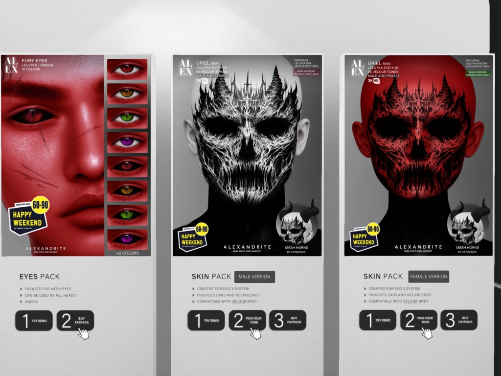 Featuring: Accessories, Animations/Poses/Props, Avatar Components, Avatar Enhancements, Builds, Clothing, Cosmetics/Nails, Footwear, Hairs, Home and Garden, Skins, Tattoos, Vehicles