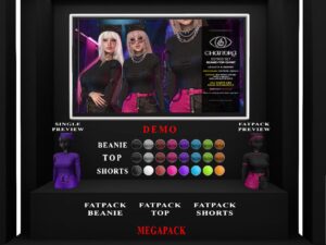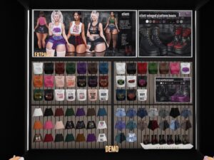 Featuring: Accessories, Animations/Poses/Props, Animals/Pets/Companions, Avatar Components, Avatar Enhancements, Builds, Clothing, Cosmetics/Nails, Footwear, Hairs, Home and Garden, HUDs, Interactive Games, Shapes, Skins