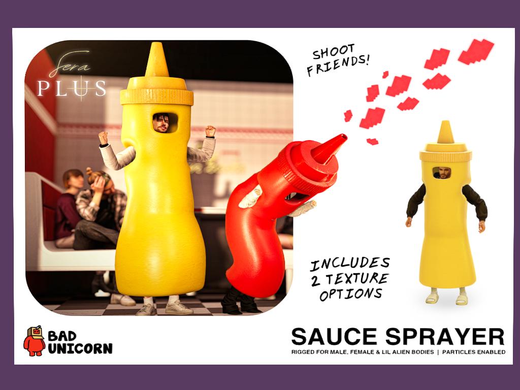 - Fun Costume – Bad Unicorn – A wearable Sauce Hitter rigged for Male/Female/Lil Alien Bodies with particles to shoot your friends. Comes in 2 texture options. PBR and legacy textures both included.