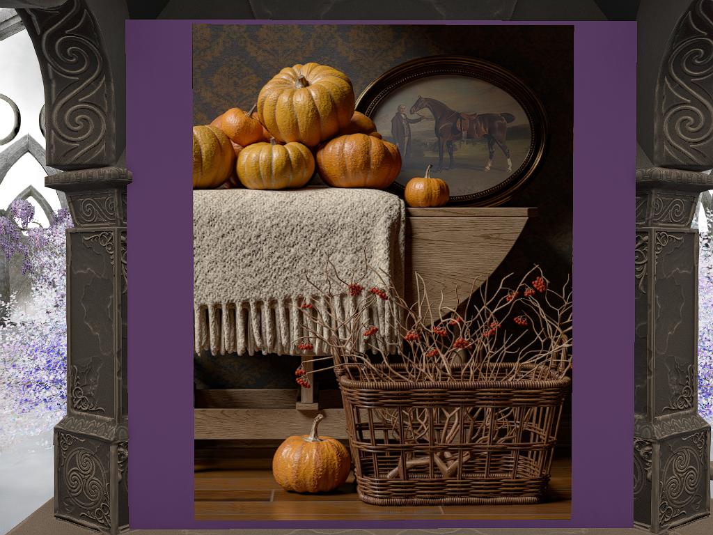 - Home and Garden Decor – Nutmeg – Beautiful Autumn Set includes legacy and PBR Textures. Includes a folded table with/without 2 different decor options and 2 throw options, basket, berry and twig basket, 3 pumpkin versions, pumpkin pile and wall art.