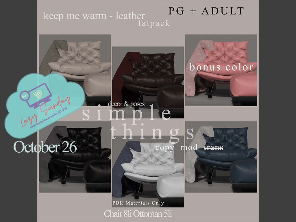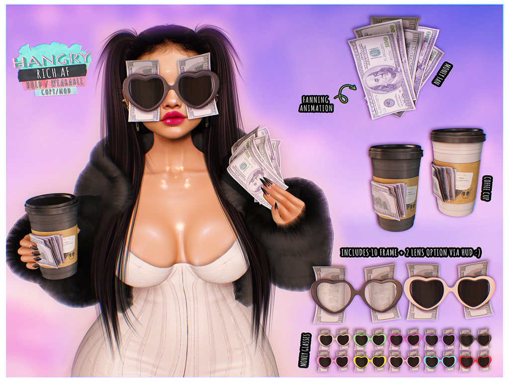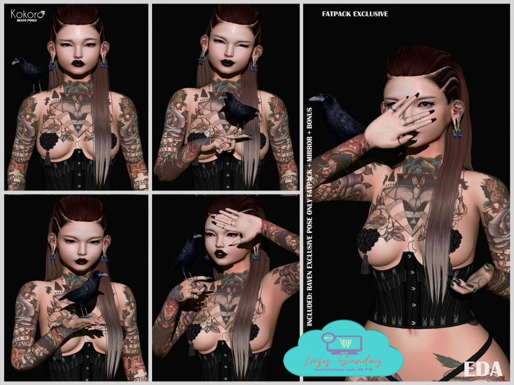 Featuring: Accessories, Animations/Poses/Props, Avatar Components, Avatar Enhancements, Builds, Clothing, Cosmetics/Nails, Footwear, Hairs, Home and Garden, Shapes, Skins, Tattoos, Tools, Vehicles