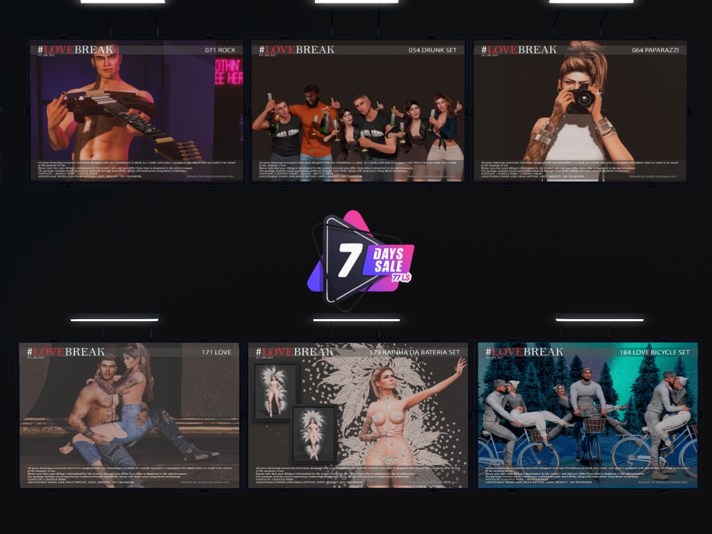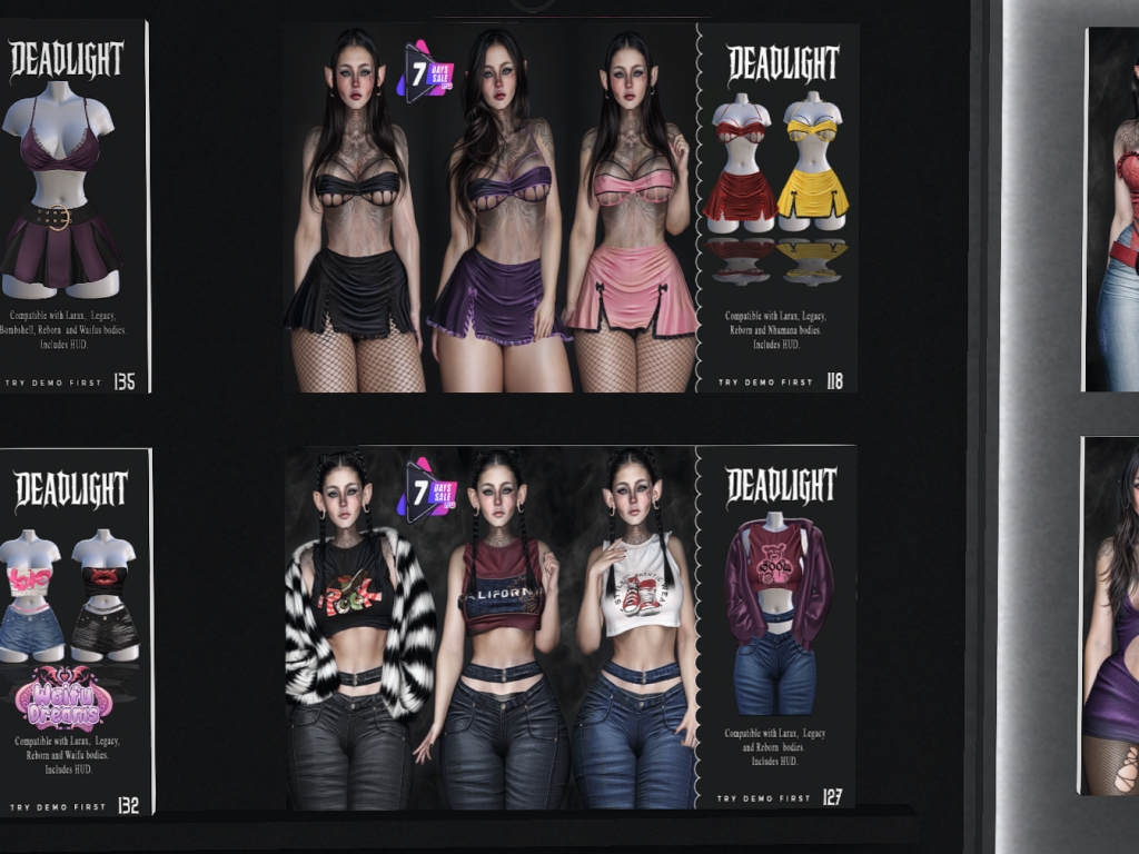 Featuring: Accessories, Animations/Poses/Props, Avatar Components, Avatar Enhancements, Clothing, Cosmetics/Nails, Home and Garden, Textures