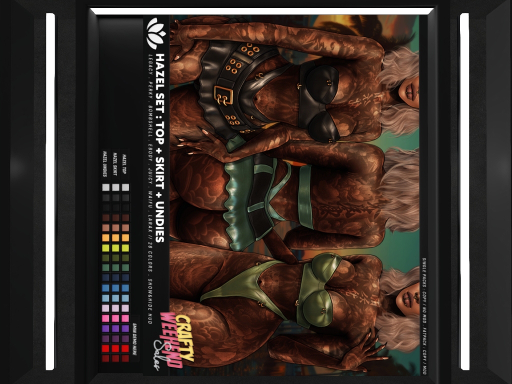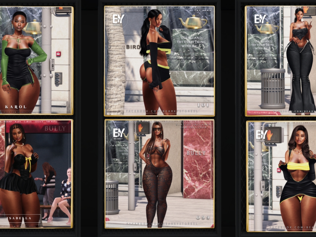 Featuring: Accessories, Animations/Poses/Props, Avatar Components, Avatar Enhancements, Builds, Clothing, Cosmetics/Nails, Footwear, Hairs, Home and Garden, Skins, Tattoos, Vehicles