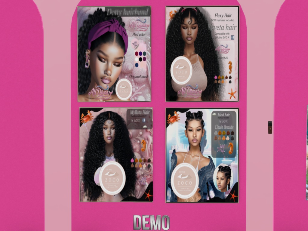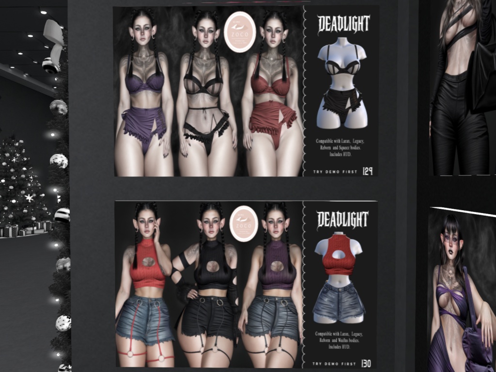Featuring: Accessories, Animations/Poses/Props, Avatar Enhancements, Builds, Clothing, Cosmetics/Nails, Footwear, Hairs, Home and Garden, Tattoos, Vehicles