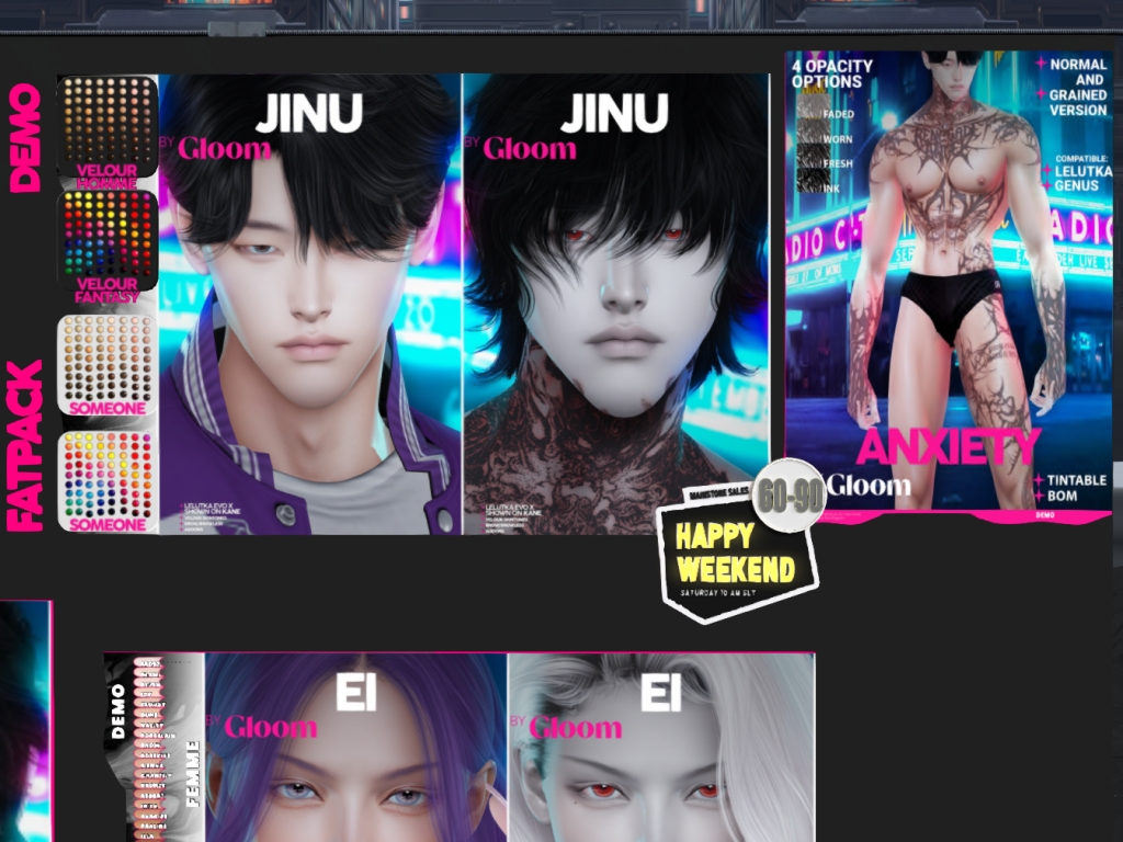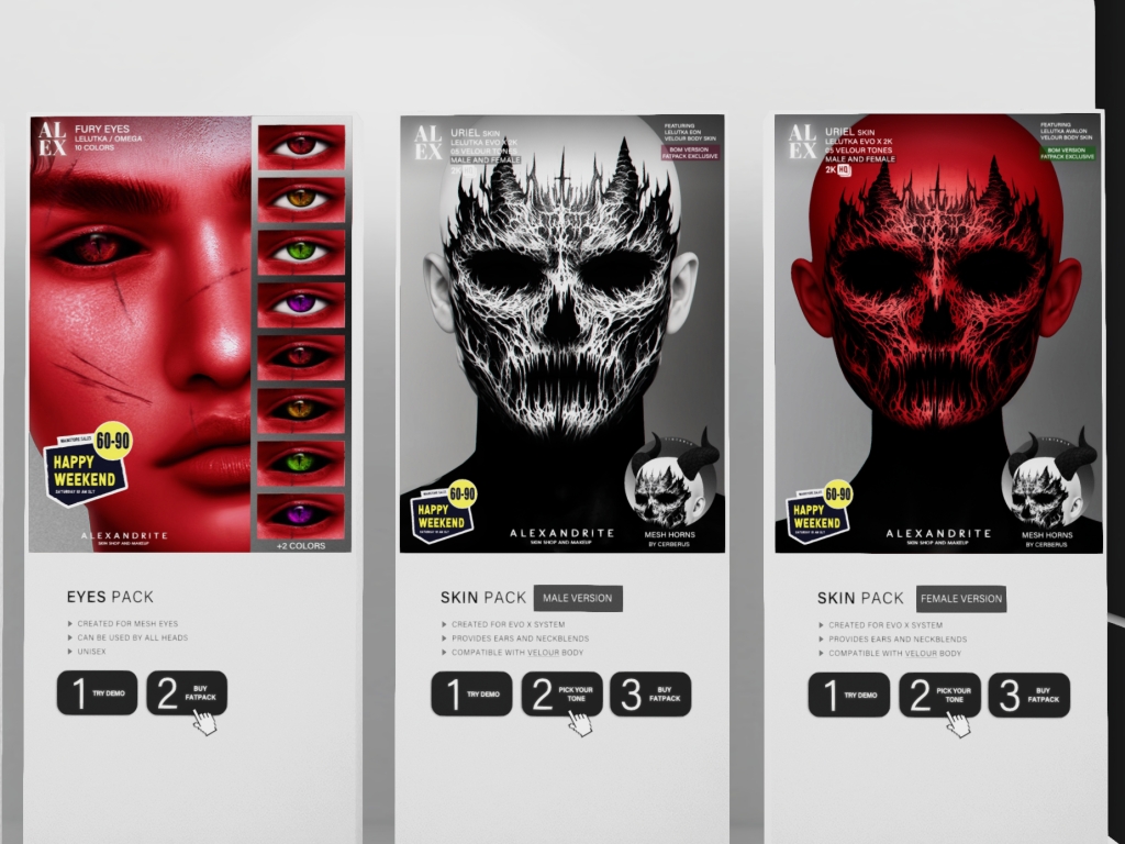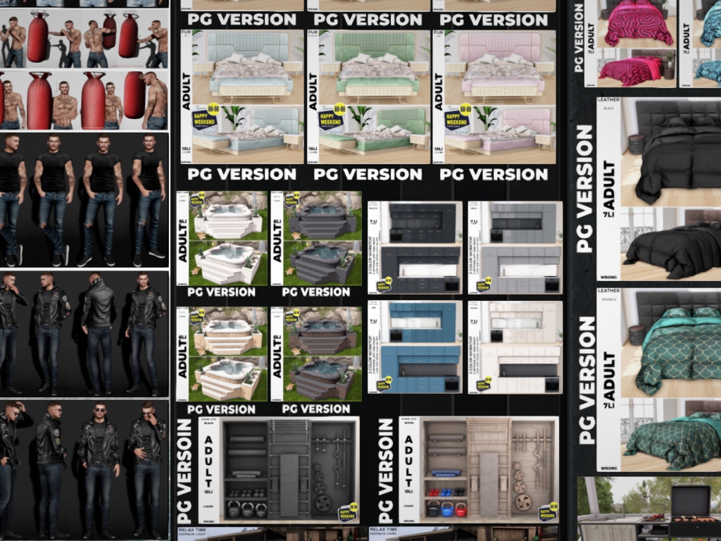 Featuring: Accessories, Animations/Poses/Props, Avatar Components, Avatar Enhancements, Builds, Clothing, Cosmetics/Nails, Footwear, Hairs, Home and Garden, Skins, Tattoos, Vehicles