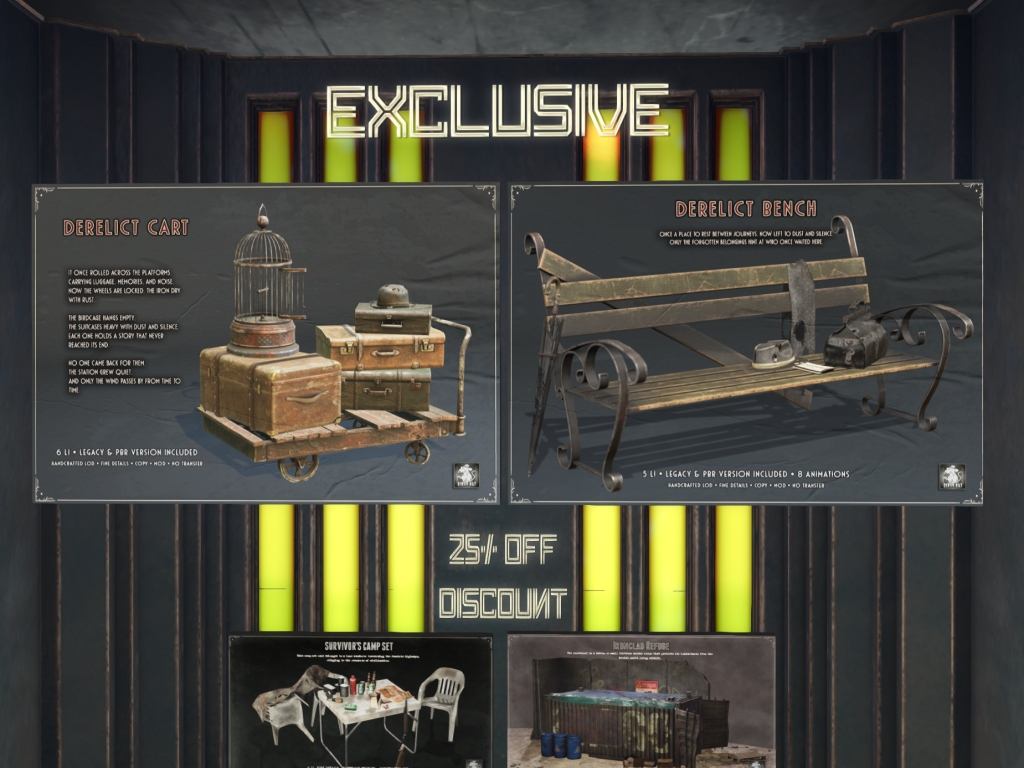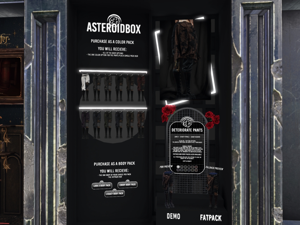 Featuring: Accessories, Animations/Poses/Props, Avatar Components, Avatar Enhancements, Builds, Clothing, Cosmetics/Nails, Footwear, Hairs, Home and Garden, Skins, Tattoos, Vehicles