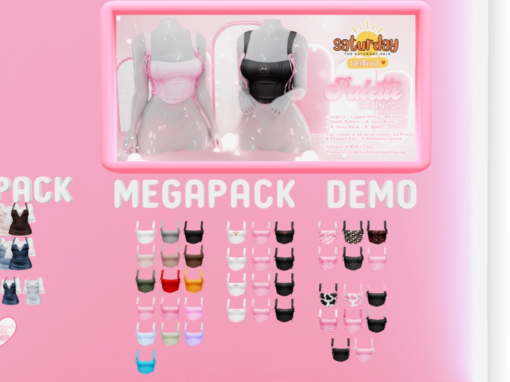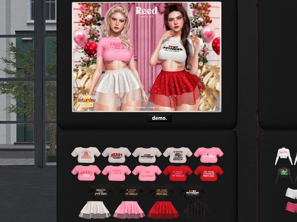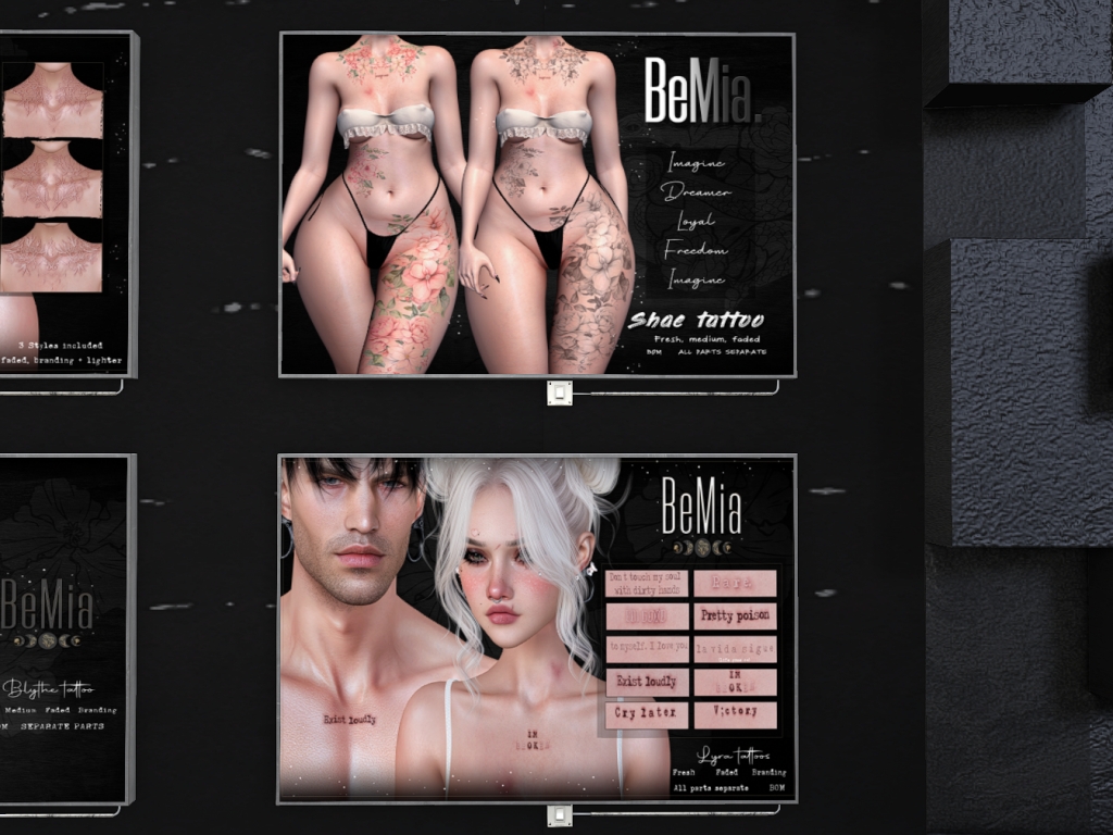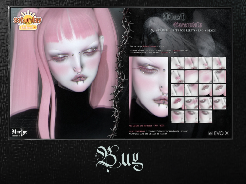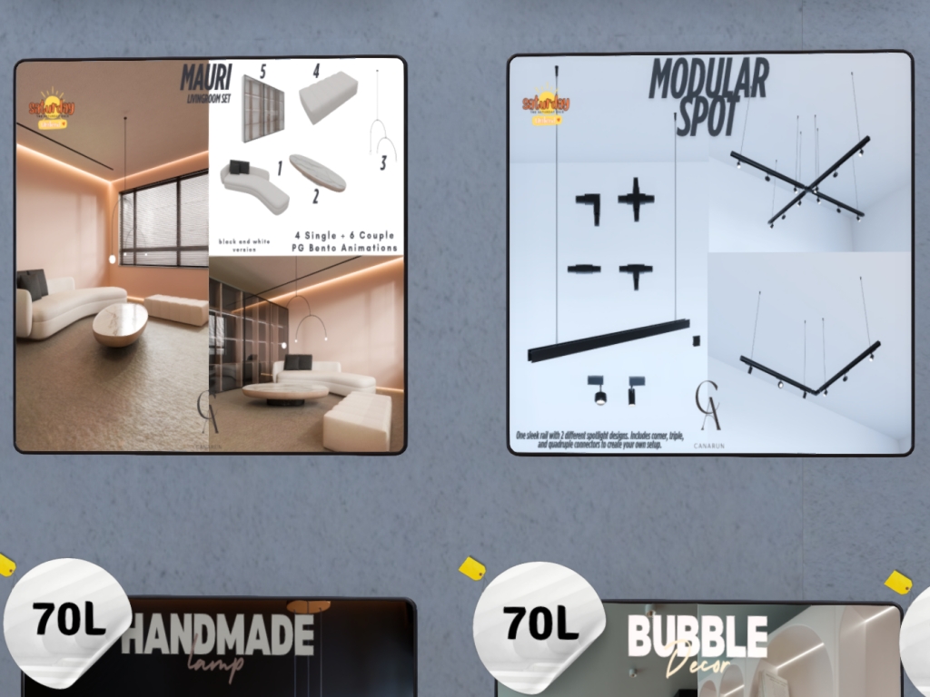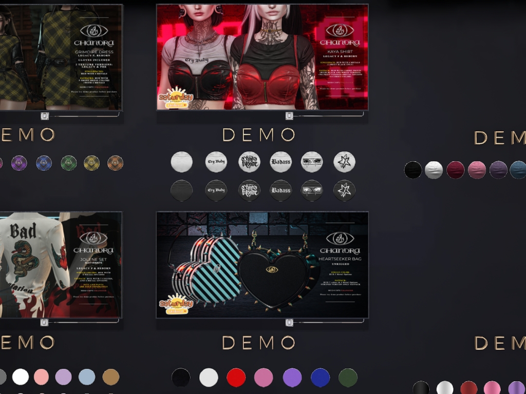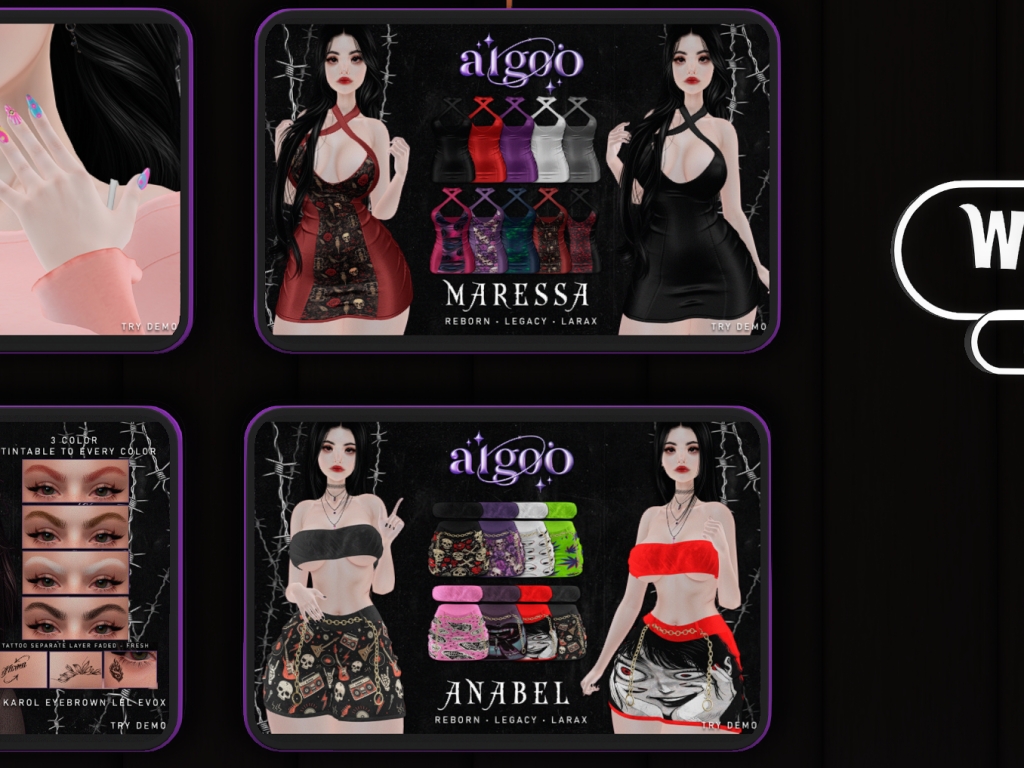 Featuring: Accessories, Animations/Poses/Props, Avatar Components, Avatar Enhancements, Builds, Clothing, Cosmetics/Nails, Hairs, Home and Garden, Skins, Tattoos, Vehicles