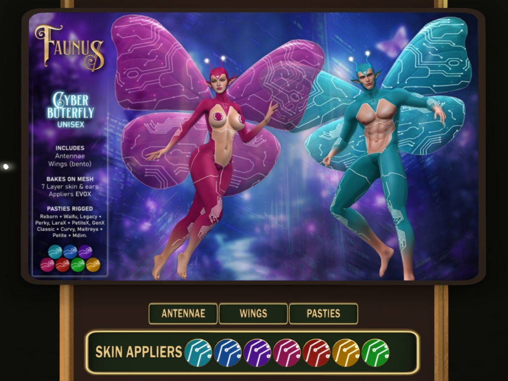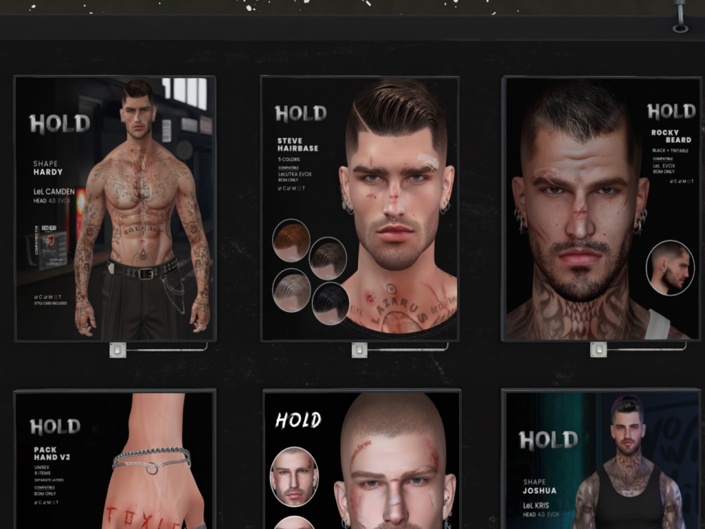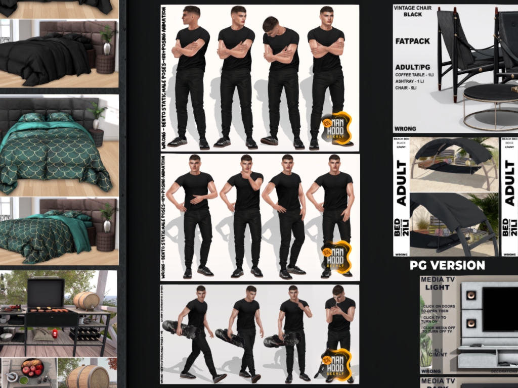 Featuring: Accessories, Animations/Poses/Props, Avatar Enhancements, Builds, Clothing, Cosmetics/Nails, Footwear, Hairs, Home and Garden, Shapes, Skins, Tattoos, Vehicles