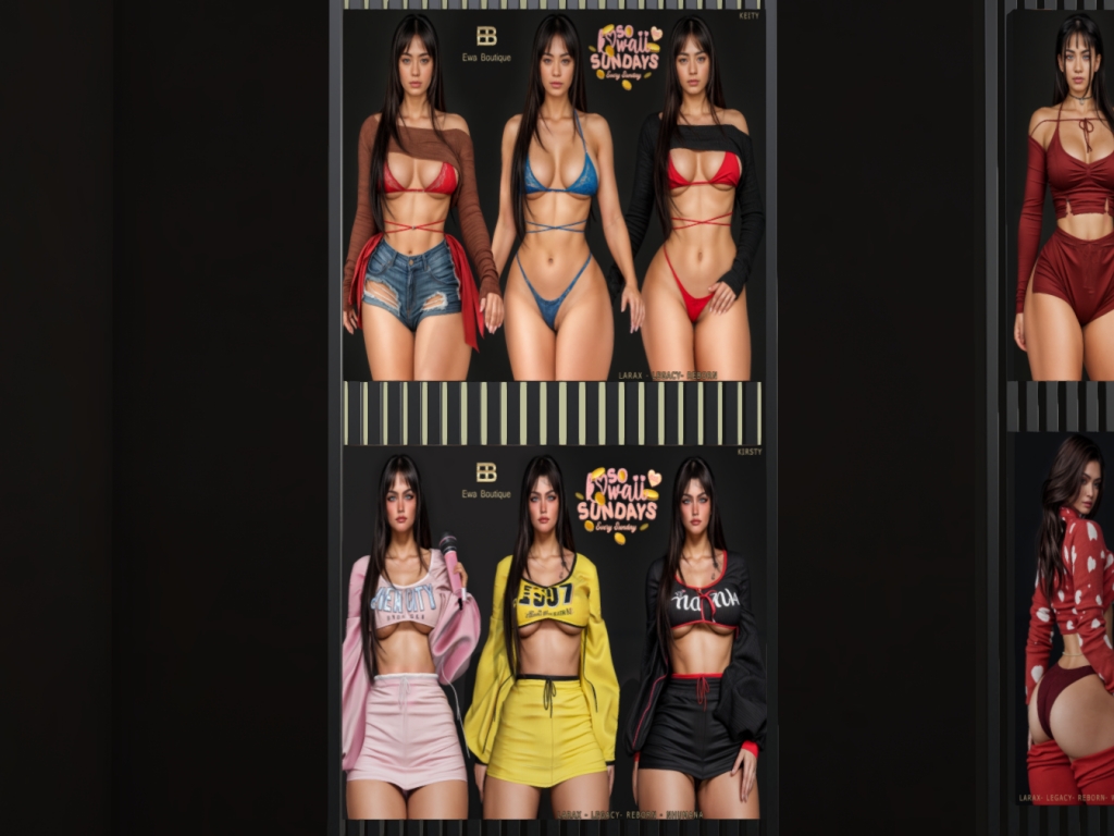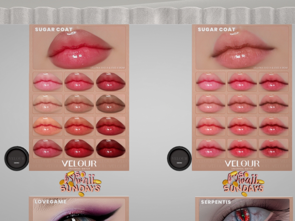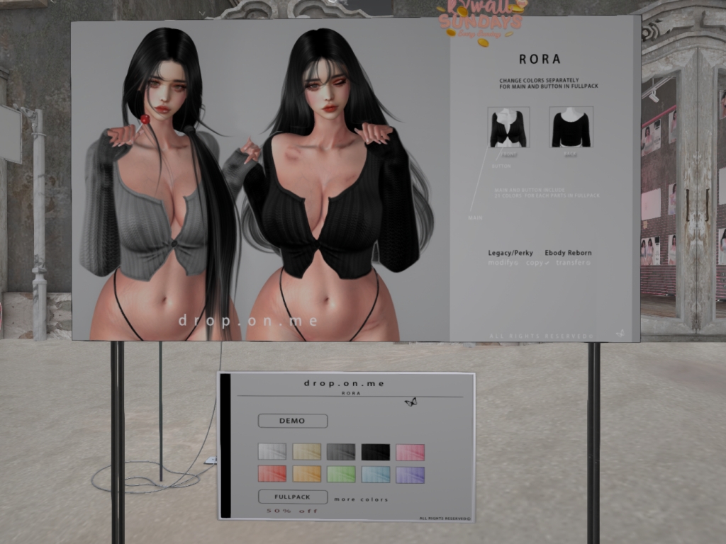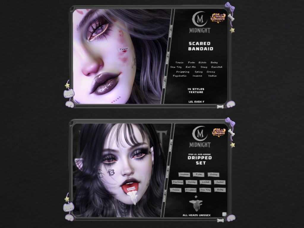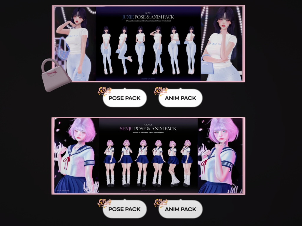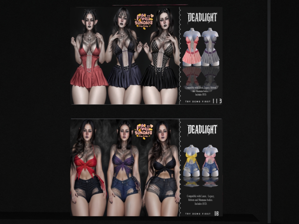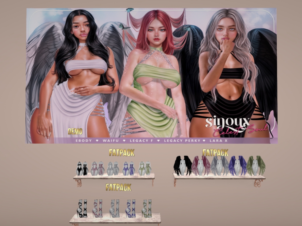 Featuring: Accessories, Animations/Poses/Props, Avatar Components, Avatar Enhancements, Builds, Clothing, Cosmetics/Nails, Footwear, Hairs, Home and Garden, Shapes, Skins, Tattoos
