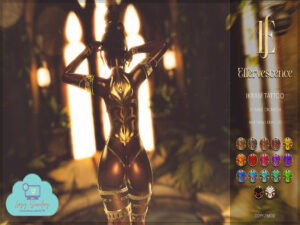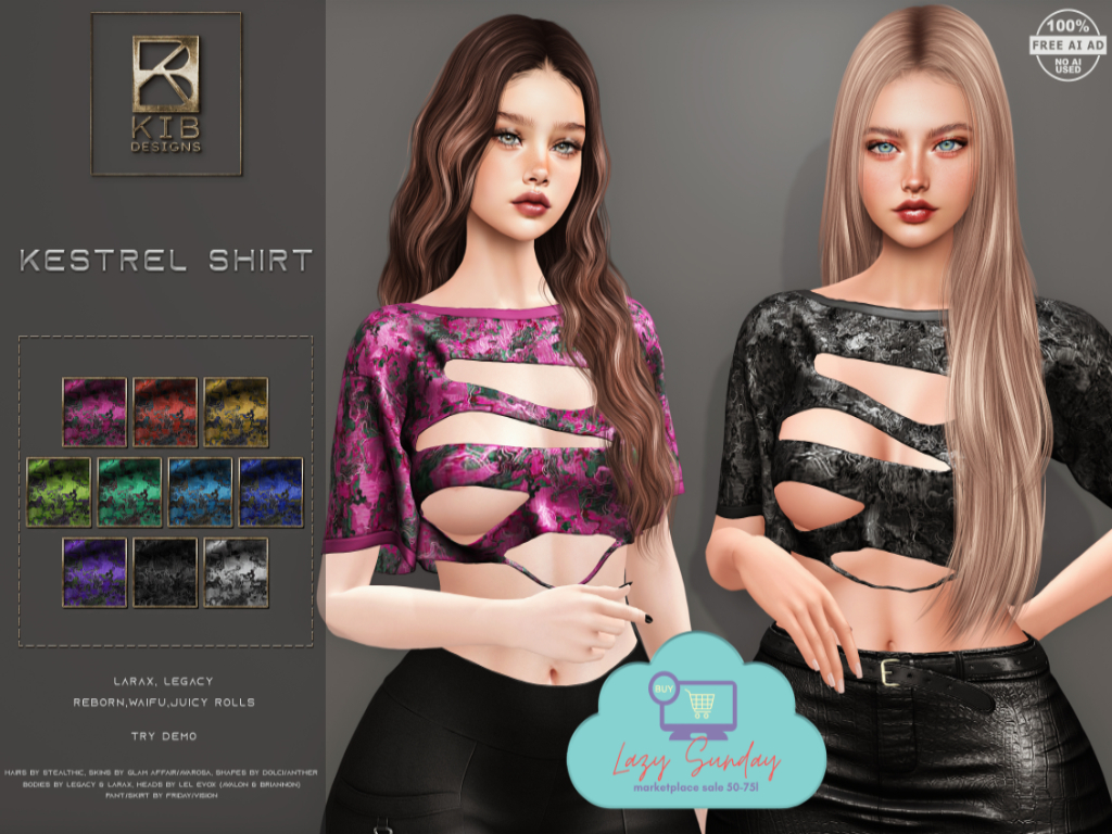 Featuring: Accessories, Animations/Poses/Props, Avatar Components, Avatar Enhancements, Builds, Clothing, Cosmetics/Nails, Footwear, Hairs, Home and Garden, Shapes, Skins, Tattoos, Vehicles