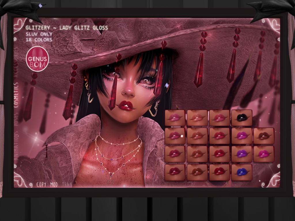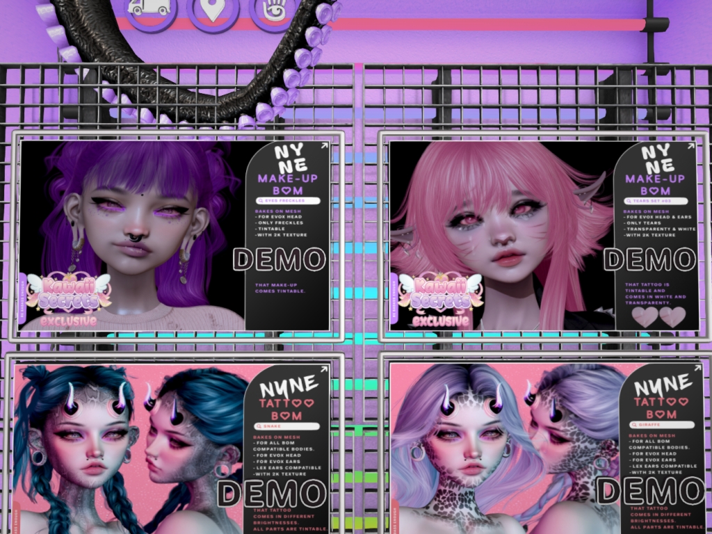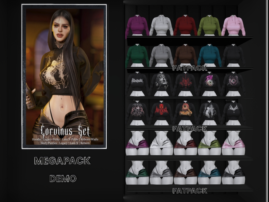 Featuring: Accessories, Animations/Poses/Props, Avatar Components, Avatar Enhancements, Clothing, Cosmetics/Nails, Footwear, Home and Garden, HUDs, Shapes, Skins, Tattoos