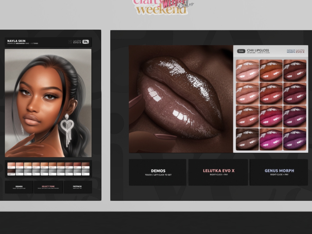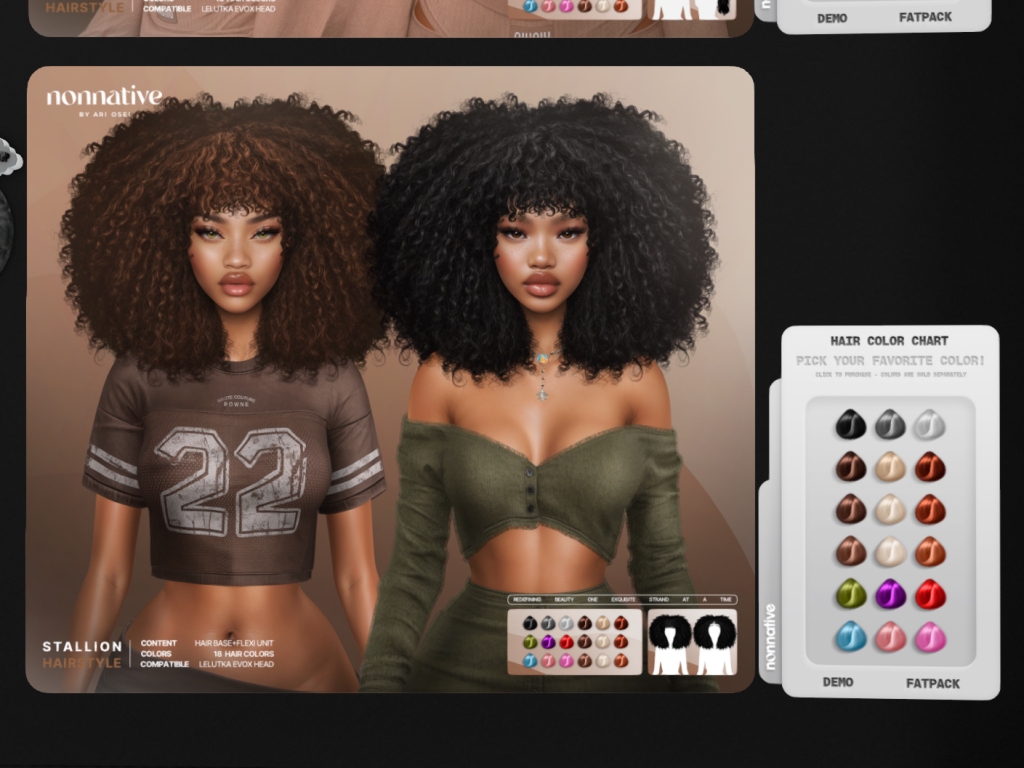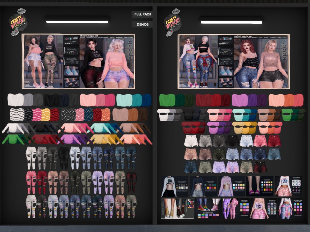 Featuring: Accessories, Animations/Poses/Props, Avatar Components, Avatar Enhancements, Builds, Clothing, Cosmetics/Nails, Footwear, Hairs, Home and Garden, Skins, Tattoos, Vehicles