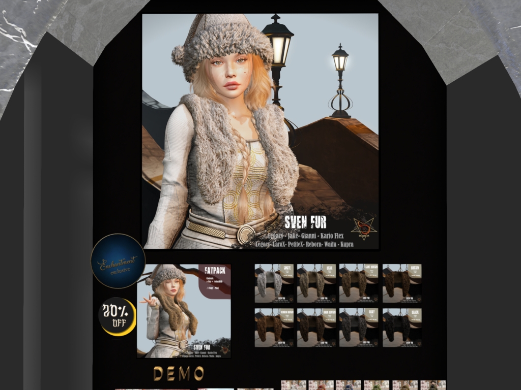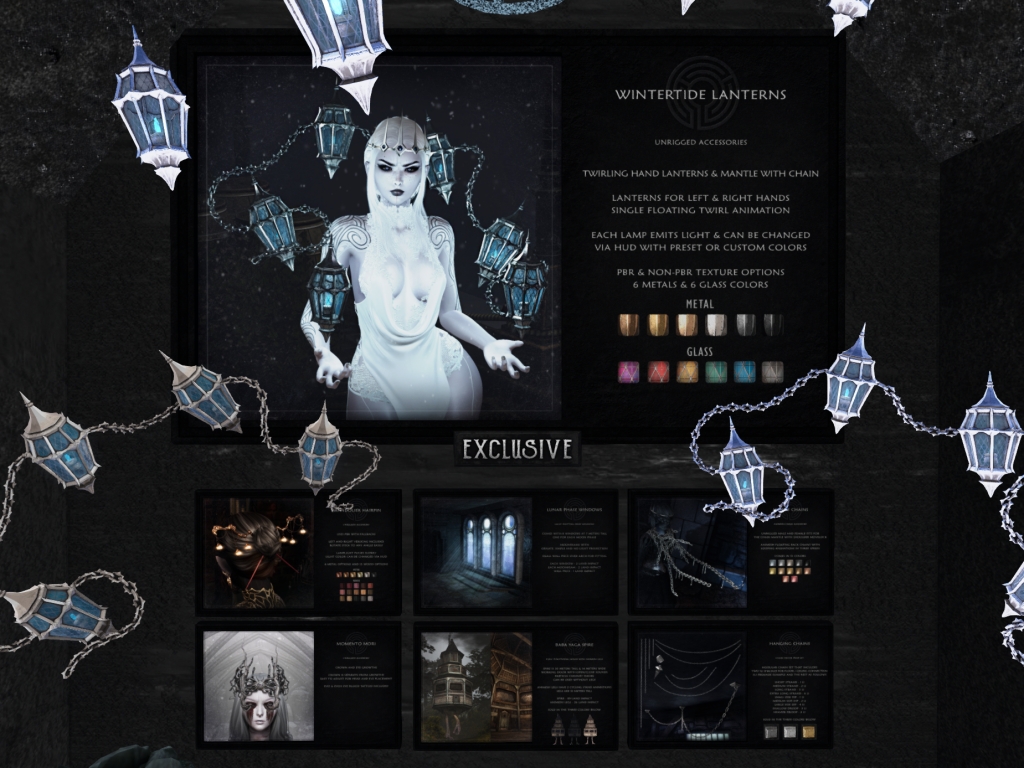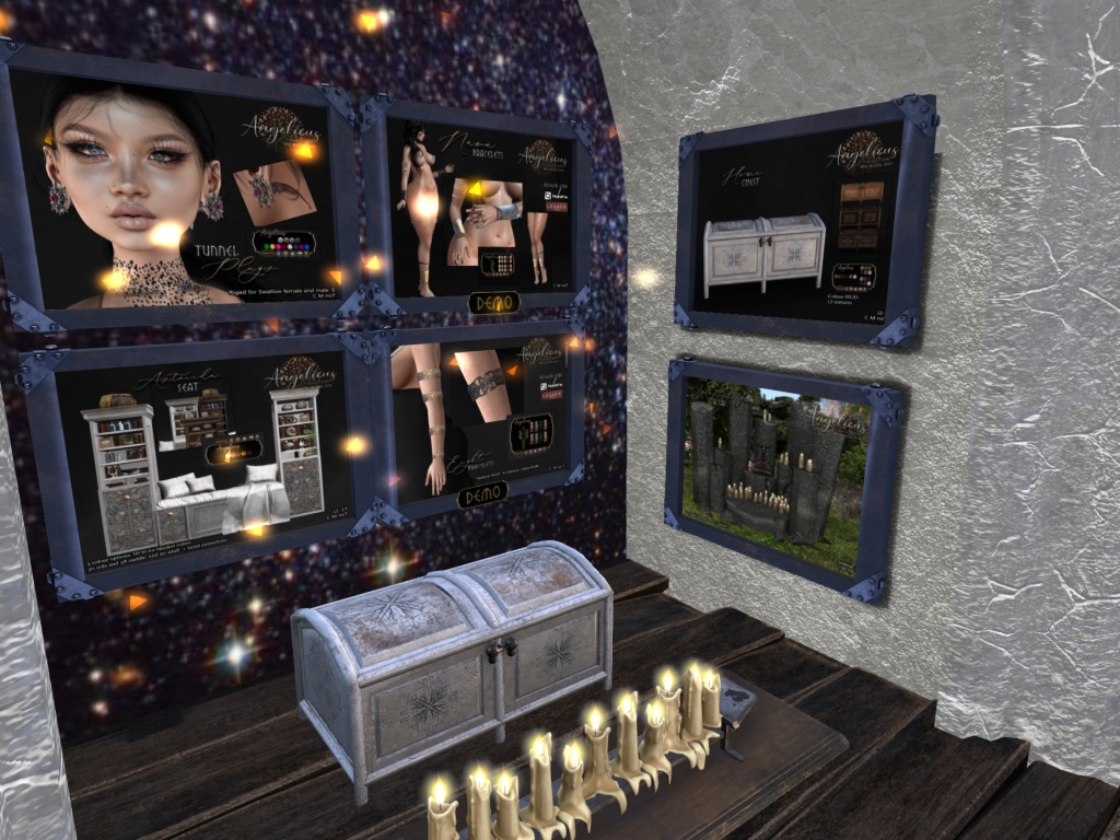 Featuring: Accessories, Animations/Poses/Props, Avatar Enhancements, Builds, Clothing, Cosmetics/Nails, Home and Garden, HUDs, Skins, Tattoos