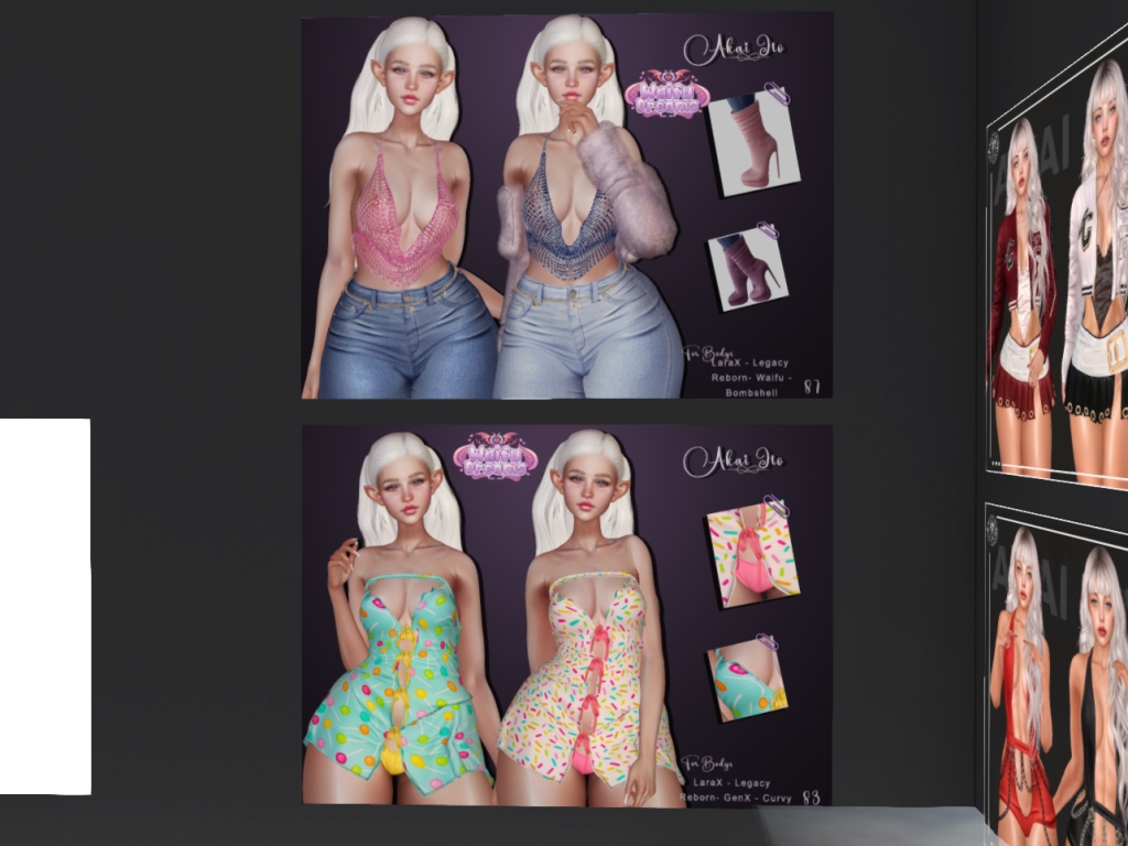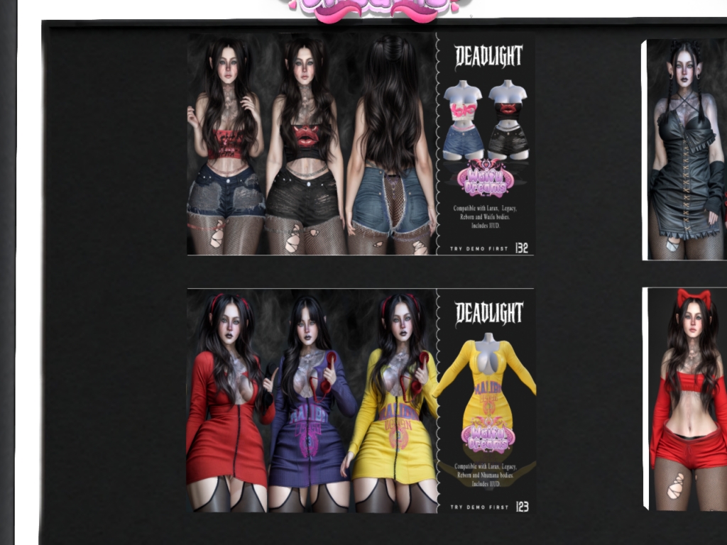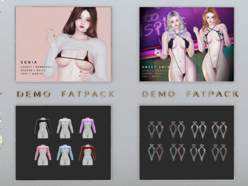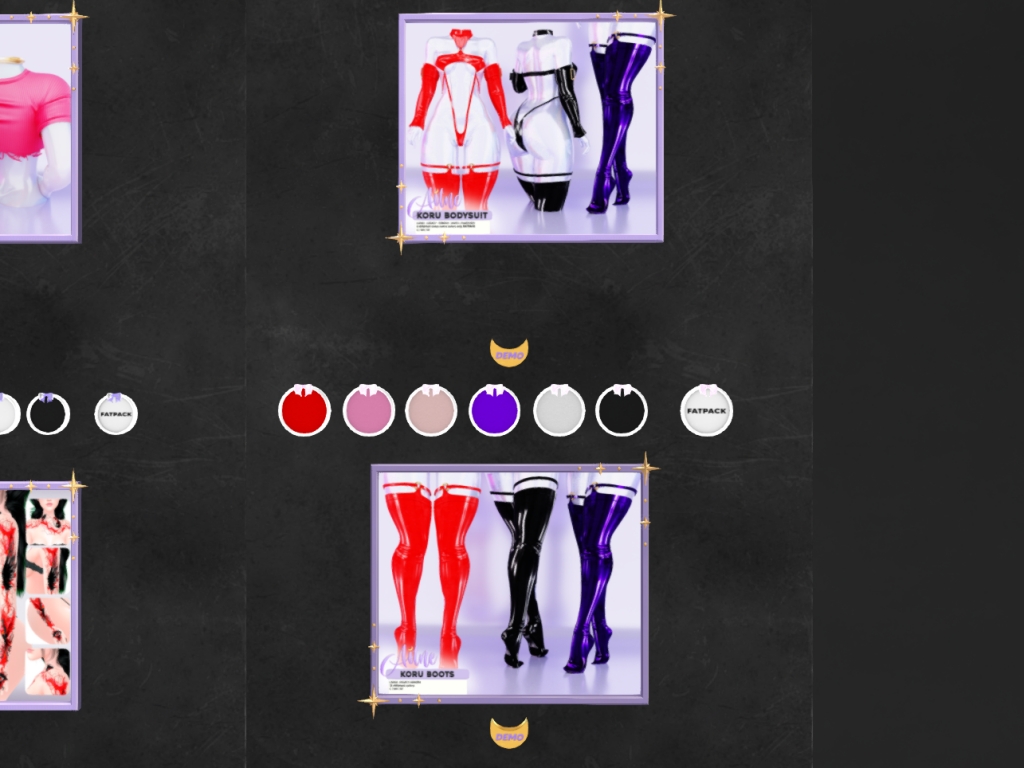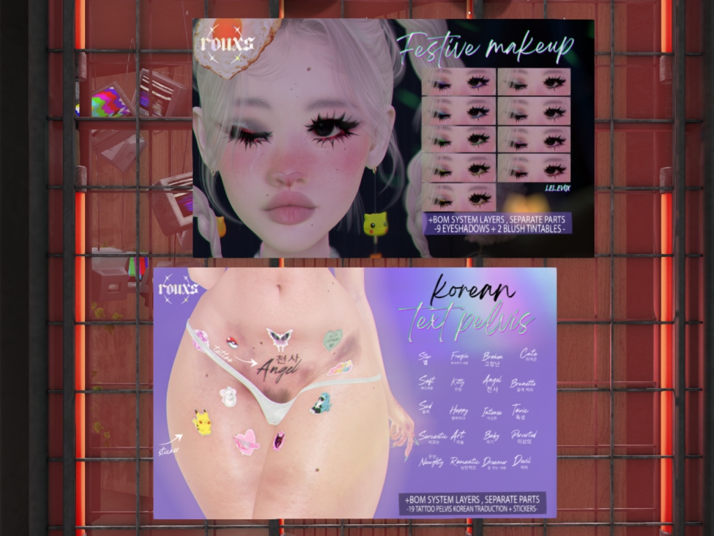 Featuring: Accessories, Animals/Pets/Companions, Animations/Poses/Props, Avatar Components, Avatar Enhancements, Builds, Clothing, Cosmetics/Nails, Footwear, Shapes, Tattoos