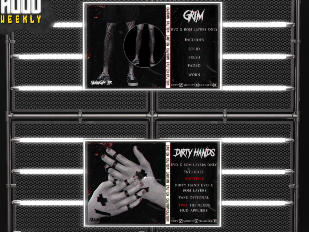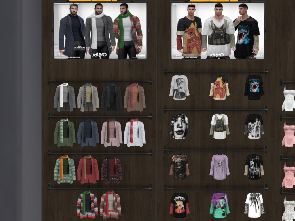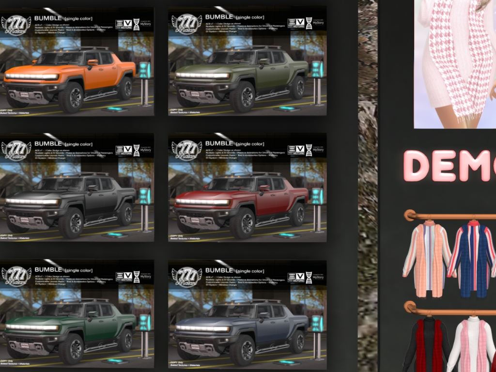 Featuring: Accessories, Animations/Poses/Props, Avatar Enhancements, Builds, Clothing, Cosmetics/Nails, Footwear, Hairs, Home and Garden, Shapes, Skins, Tattoos, Vehicles