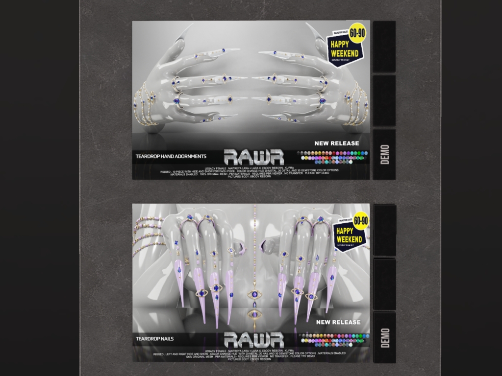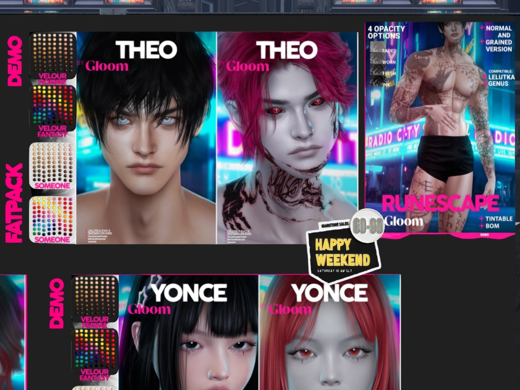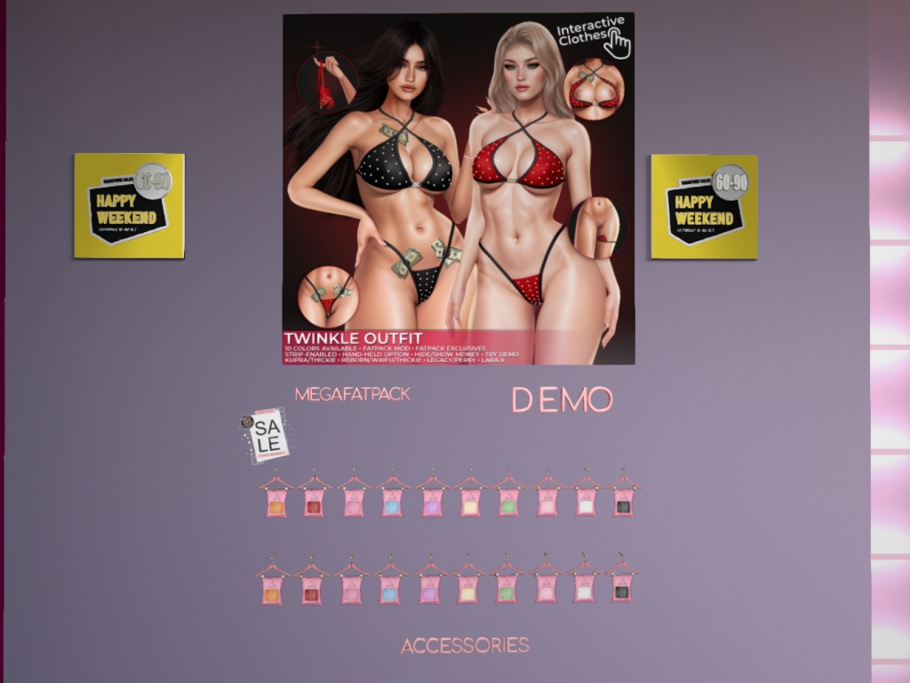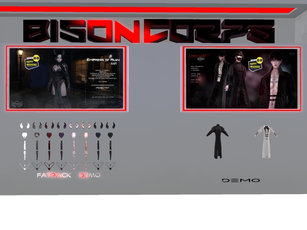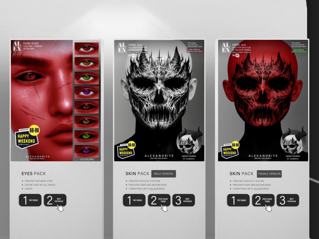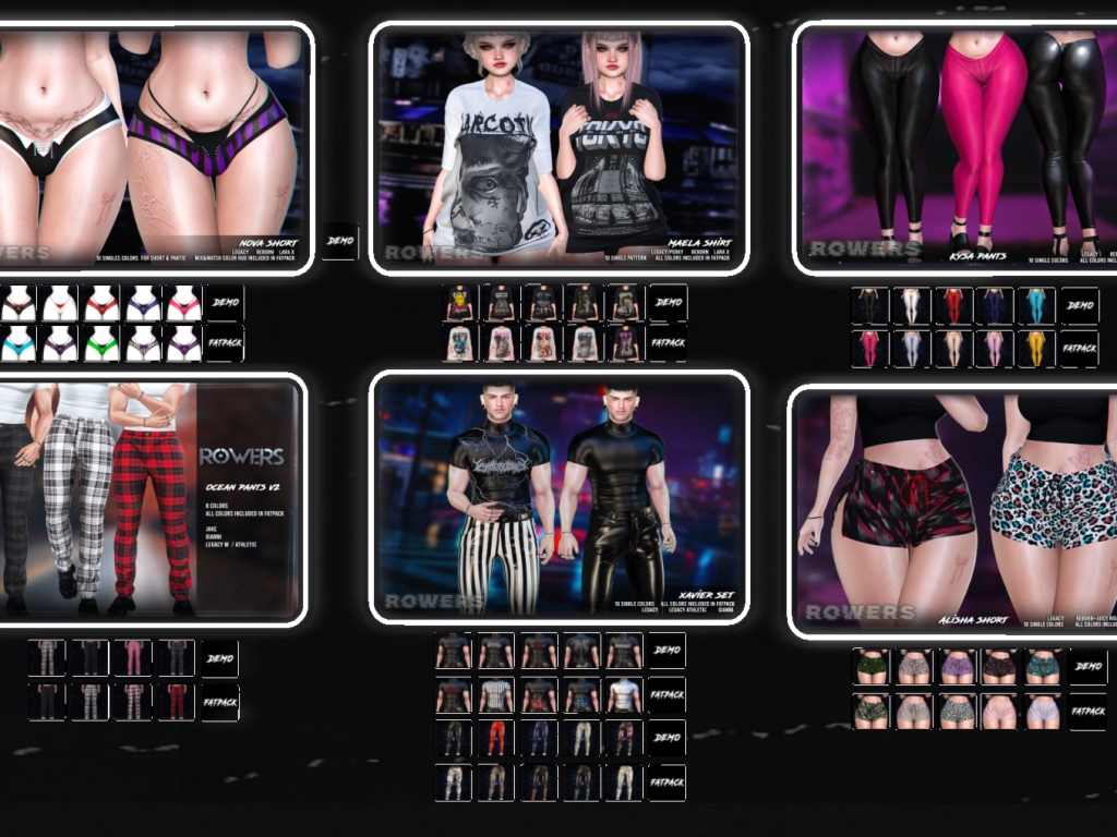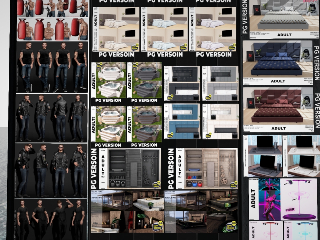 Featuring: Accessories, Animations/Poses/Props, Avatar Components, Avatar Enhancements, Builds, Clothing, Cosmetics/Nails, Footwear, Hairs, Home and Garden, Skins, Tattoos, Vehicles