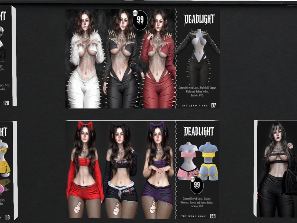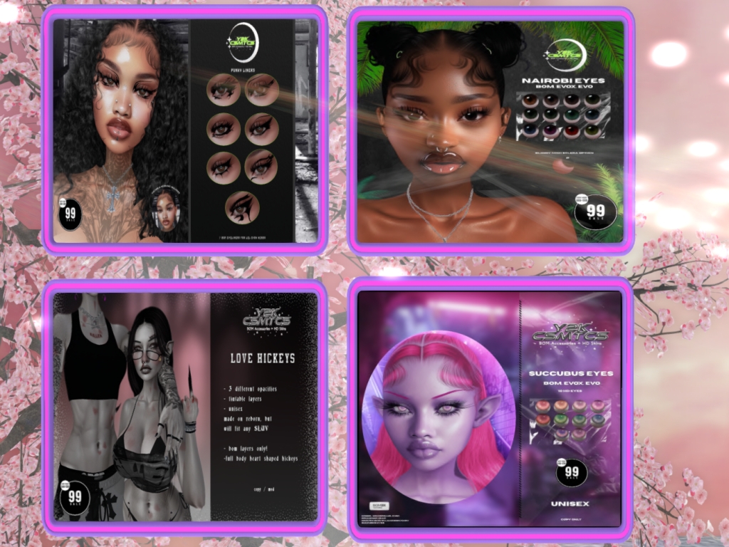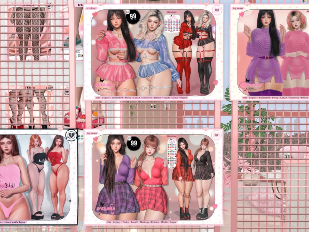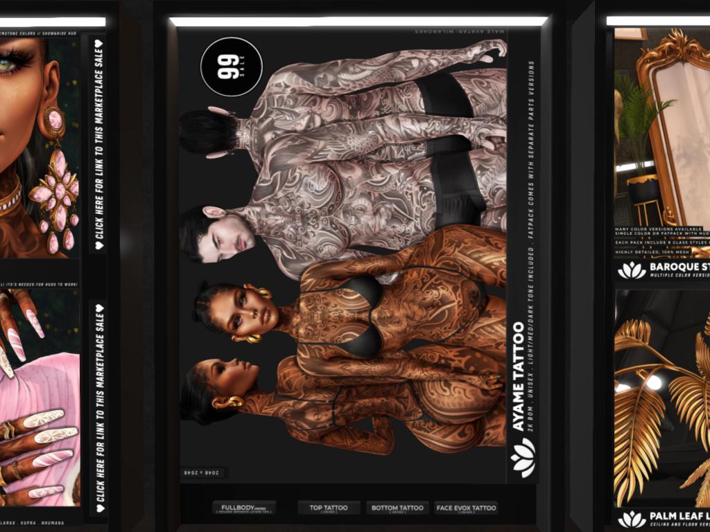 Featuring: Accessories, Animations/Poses/Props, Avatar Components, Avatar Enhancements, Clothing, Cosmetics/Nails, Footwear, Home and Garden, Skins, Tattoos, Vehicles