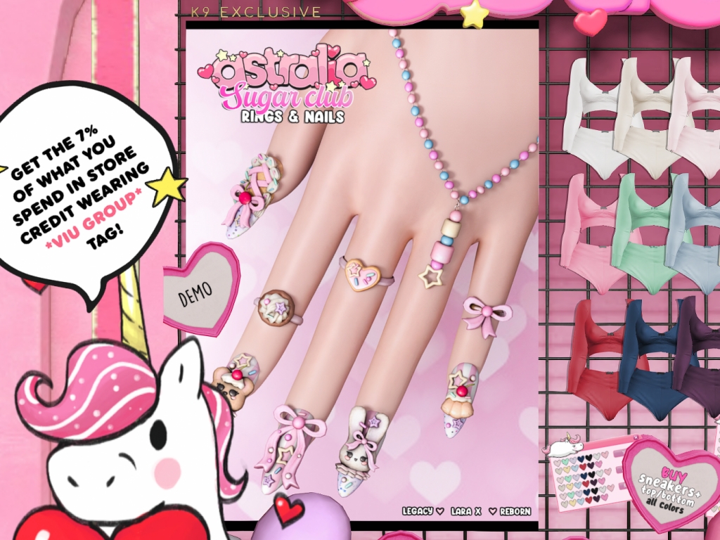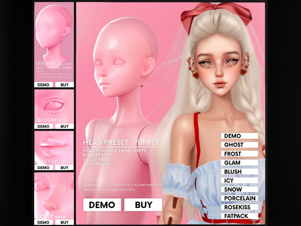 Featuring: Accessories, Animations/Poses/Props, Avatar Components, Builds, Clothing, Cosmetics/Nails, Footwear, Hairs, Home and Garden, Skins