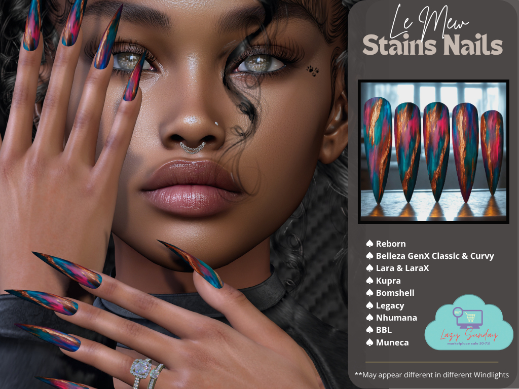 Featuring: Accessories, Animations/Poses/Props, Avatar Components, Avatar Enhancements, Builds, Clothing, Cosmetics/Nails, Footwear, Hairs, Home and Garden, Shapes, Skins, Tattoos, Vehicles