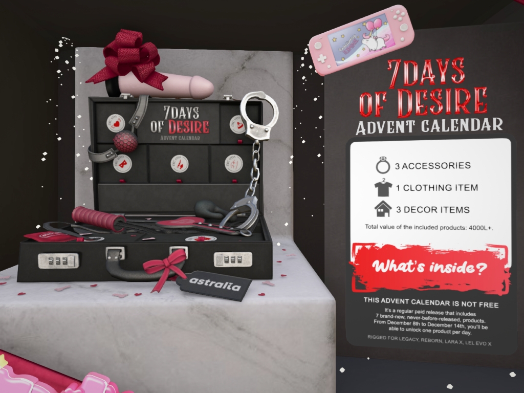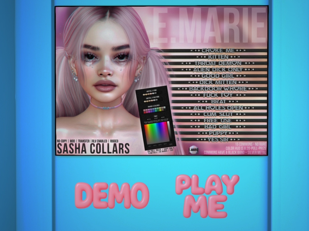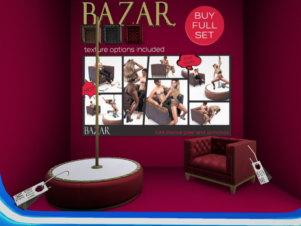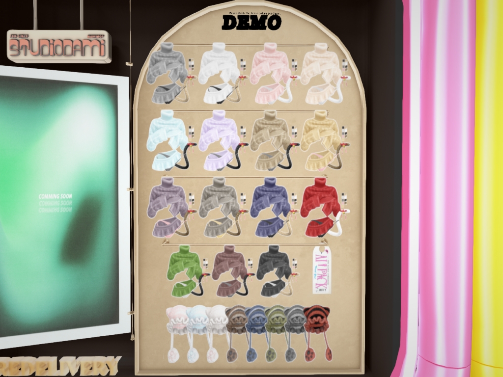 Featuring: Accessories, Animations/Poses/Props, Avatar Components, Avatar Enhancements, Builds, Clothing, Cosmetics/Nails, Footwear, Hairs, Home and Garden, HUDs, Interactive Games, Skins, Tattoos