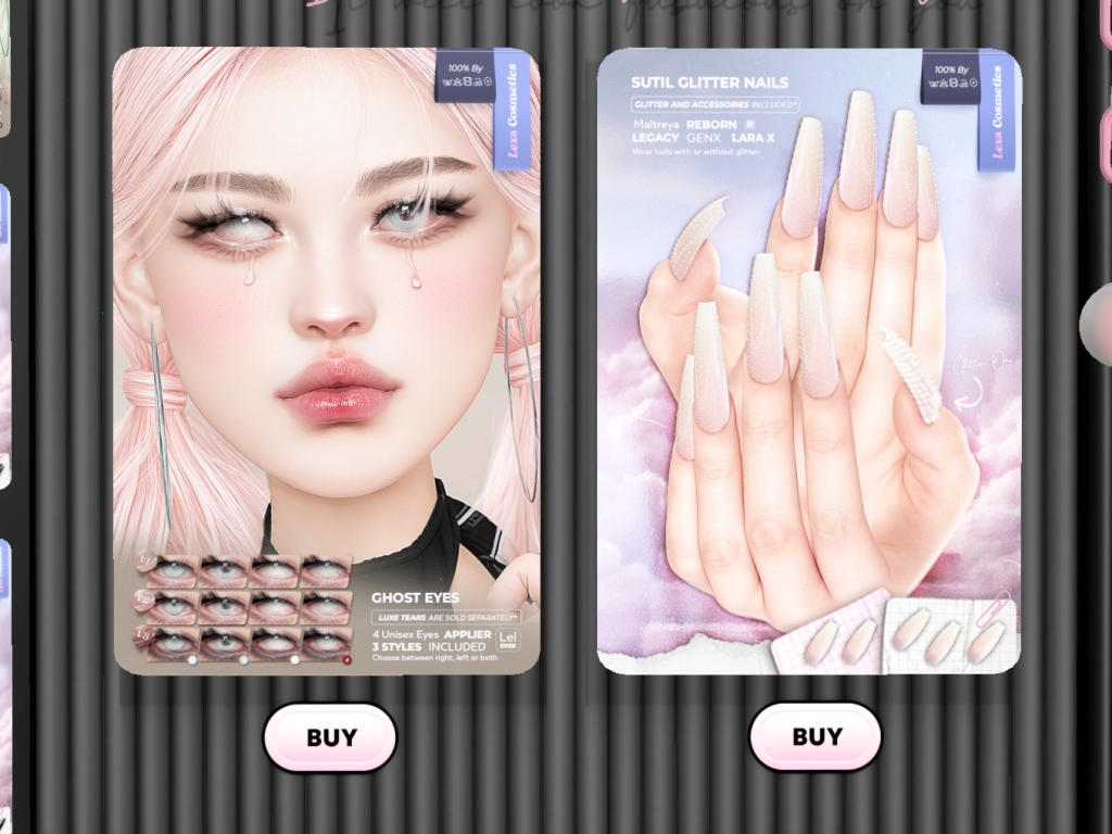 Featuring: Accessories, Animals/Pets/Companions, Animations/Poses/Props, Avatar Components, Builds, Clothing, Cosmetics/Nails, Footwear, Hairs, Home and Garden, HUDs, Shapes, Skins, Tattoos, Tools, Vehicles
