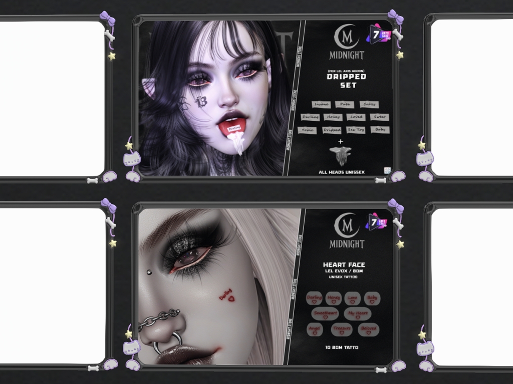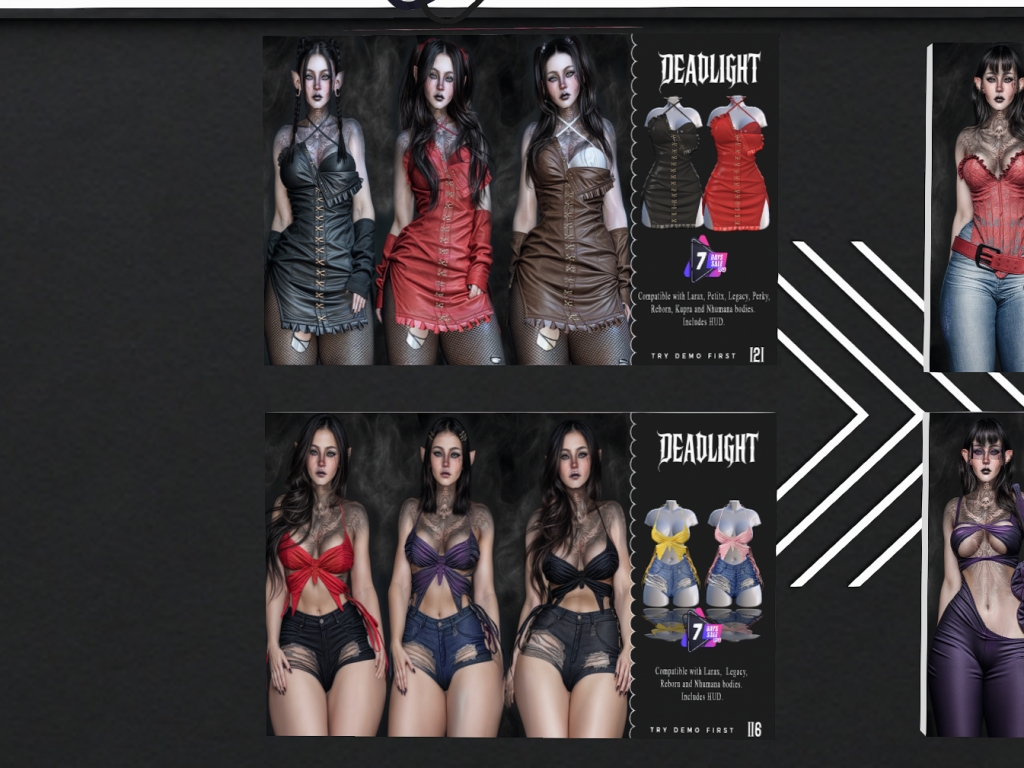 Featuring: Accessories, Animations/Poses/Props, Avatar Enhancements, Clothing, Cosmetics/Nails, Footwear, Home and Garden, Tattoos, Textures