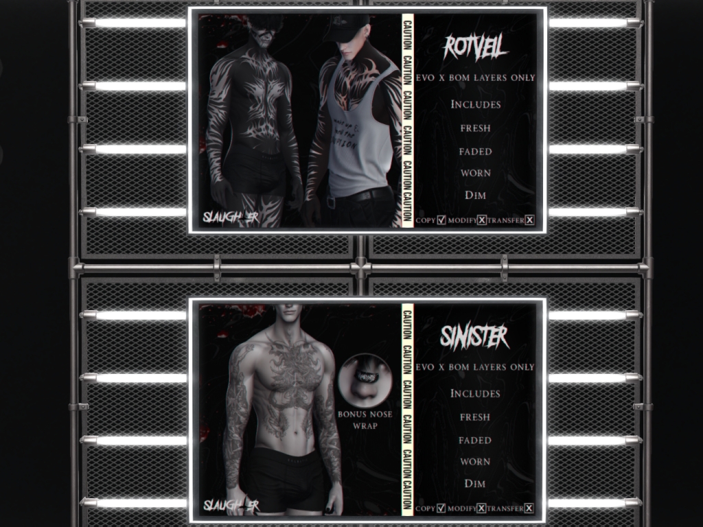 Featuring: Accessories, Animations/Poses/Props, Avatar Enhancements, Builds, Clothing, Footwear, Hairs, Home and Garden, Shapes, Skins, Tattoos, Vehicles