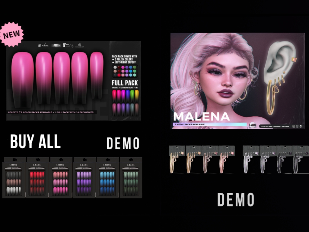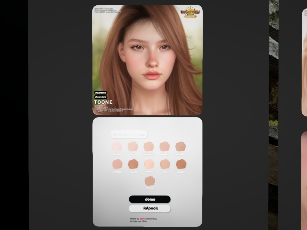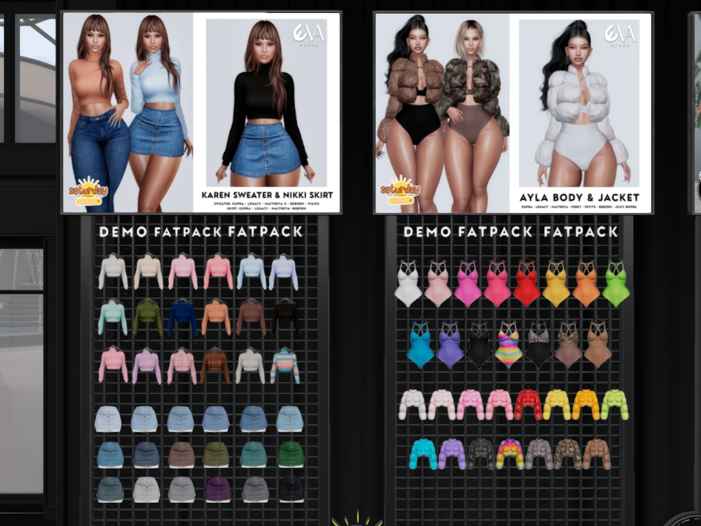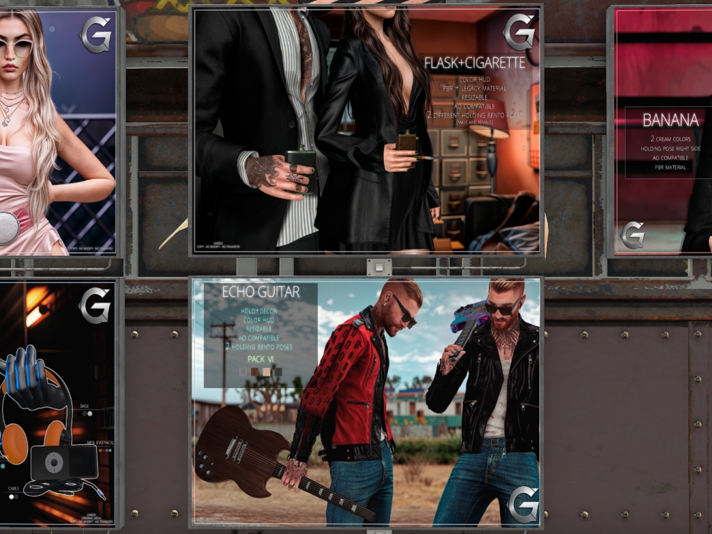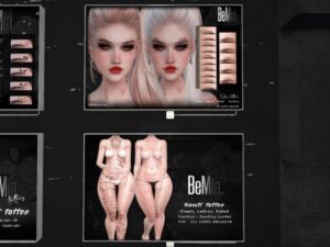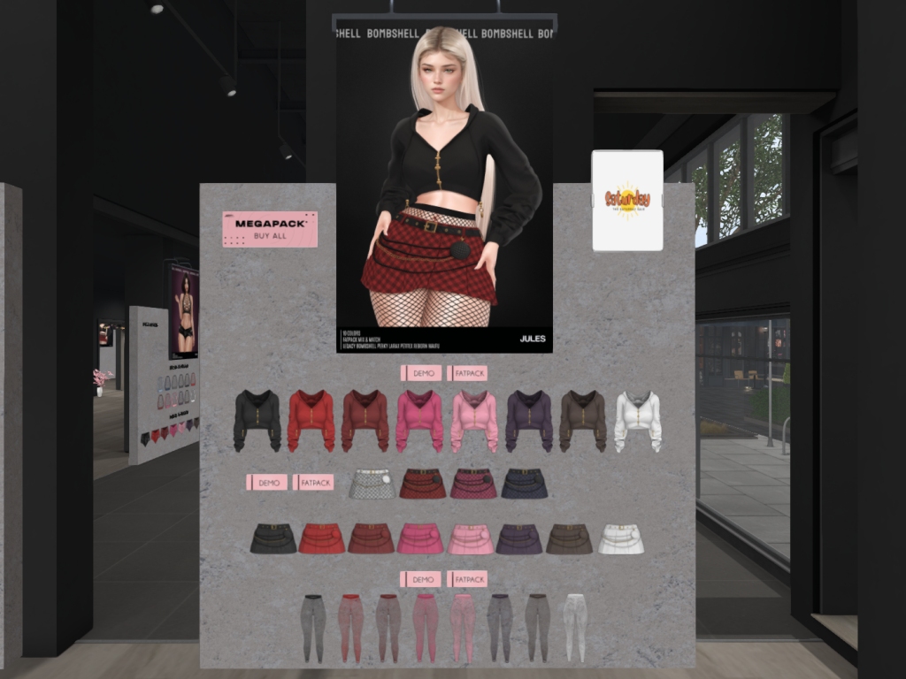 Featuring: Accessories, Animations/Poses/Props, Avatar Components, Avatar Enhancements, Builds, Clothing, Cosmetics/Nails, Hairs, Home and Garden, Skins, Tattoos, Vehicles