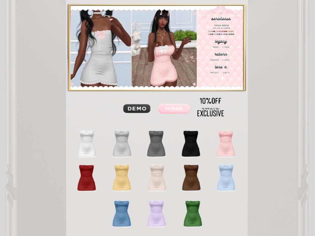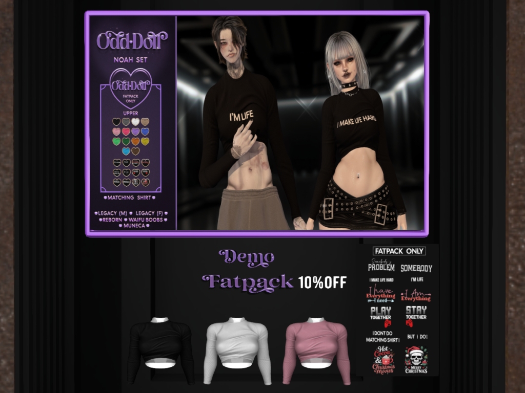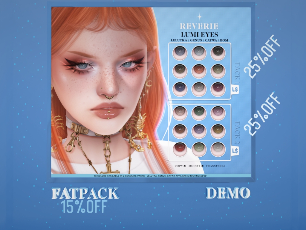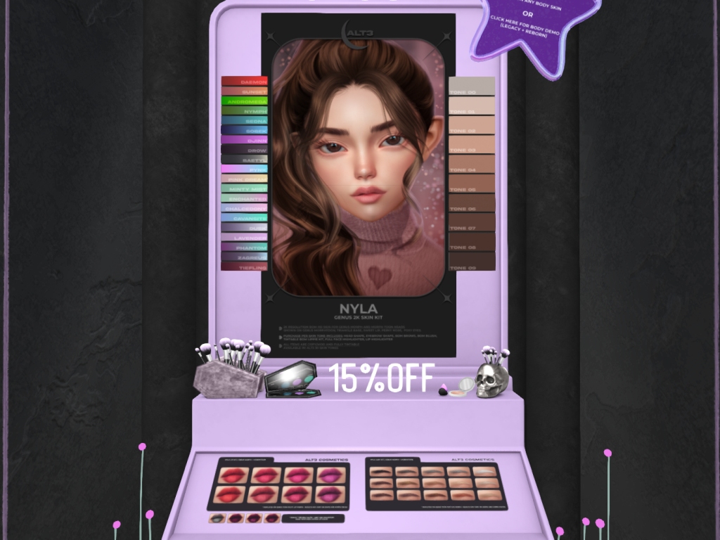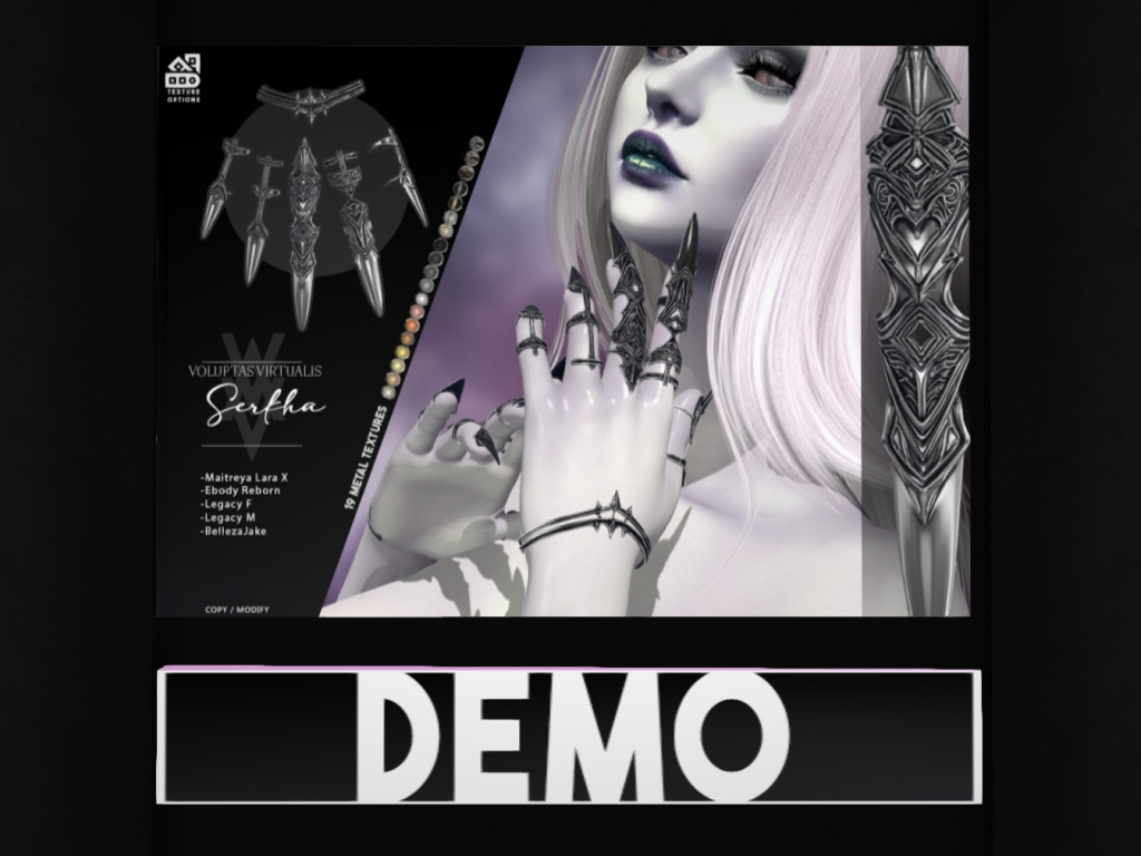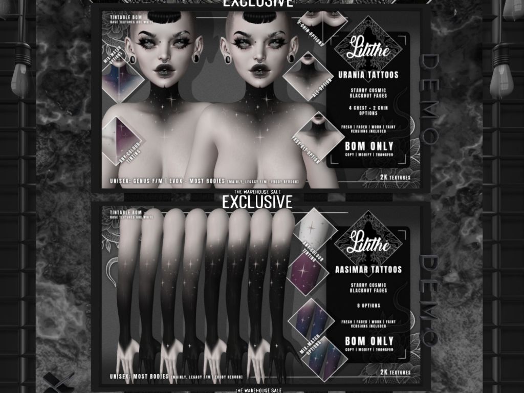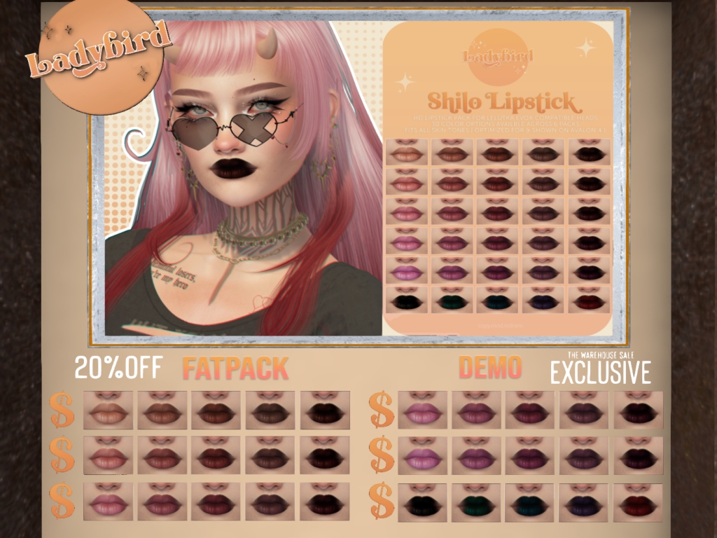 Featuring: Accessories, Animals/Pets/Companions, Animations/Poses/Props, Avatar Components, Avatar Enhancements, Builds, Clothing, Cosmetics/Nails, Footwear, Hairs, Home and Garden, Skins, Tattoos