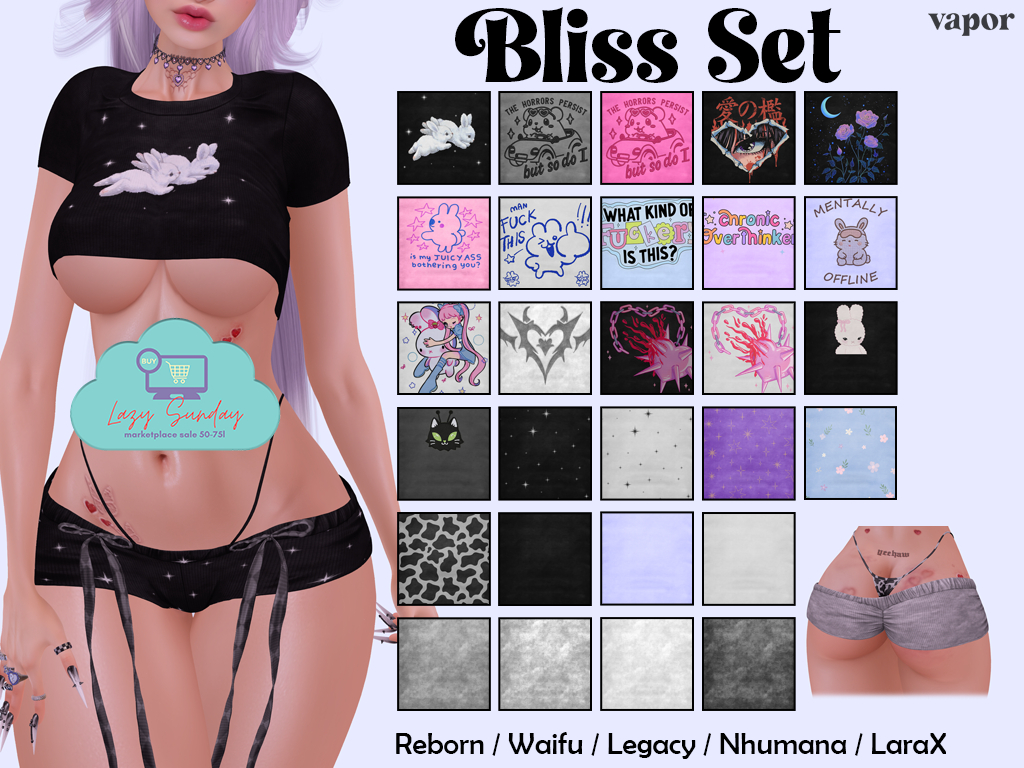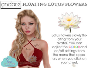 Featuring: Accessories, Animations/Poses/Props, Avatar Components, Avatar Enhancements, Builds, Clothing, Cosmetics/Nails, Footwear, Hairs, Home and Garden, Shapes, Skins, Tattoos, Vehicles