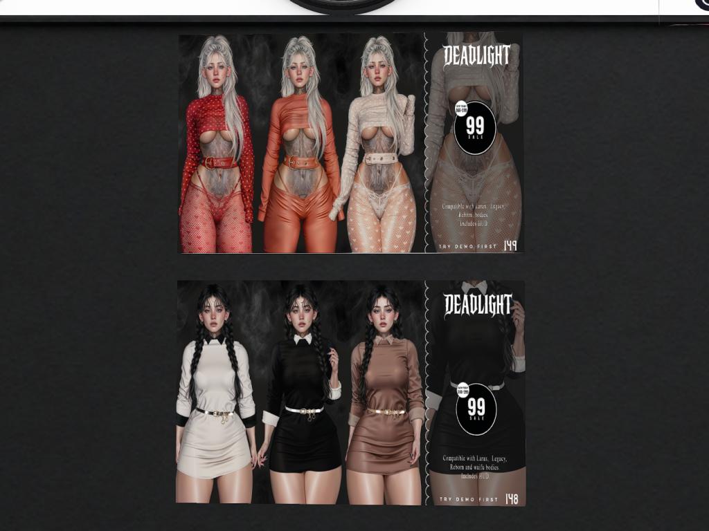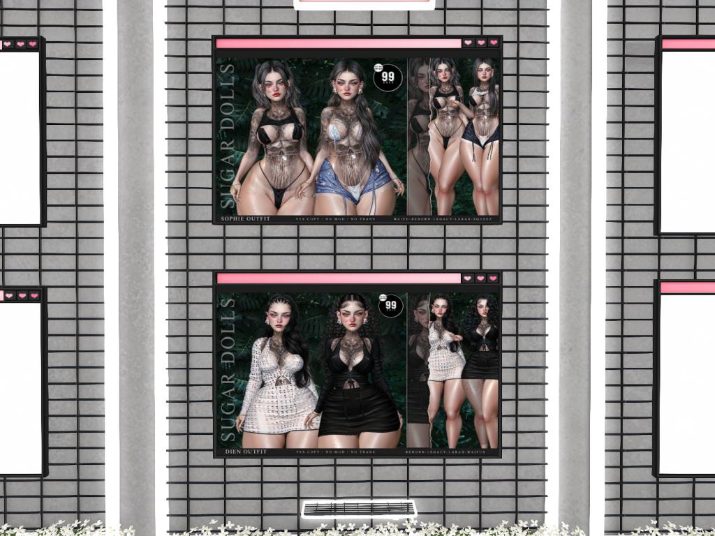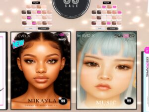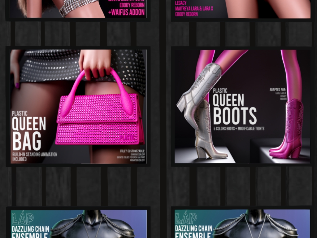 Featuring: Accessories, Animations/Poses/Props, Avatar Components, Avatar Enhancements, Clothing, Cosmetics/Nails, Footwear, Home and Garden, HUDs, Skins, Tattoos, Vehicles