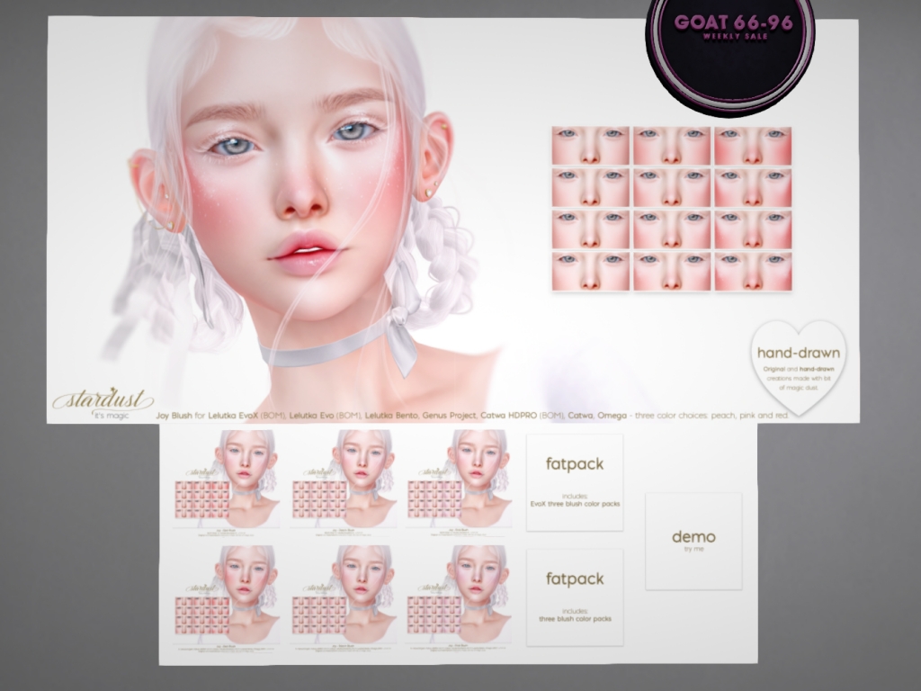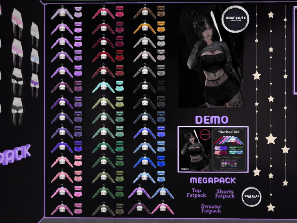 Featuring: Accessories, Animations/Poses/Props, Avatar Components, Avatar Enhancements, Clothing, Cosmetics/Nails, Footwear, Home and Garden, Tattoos