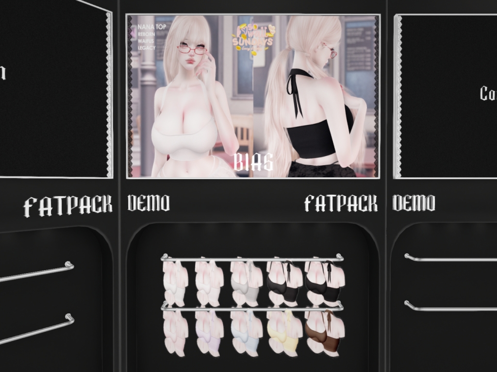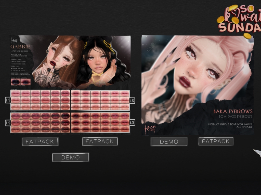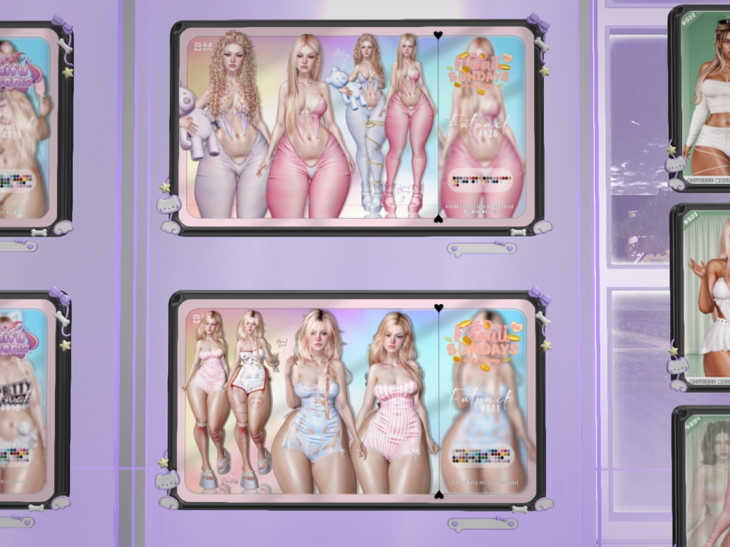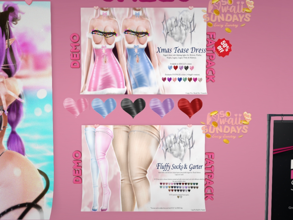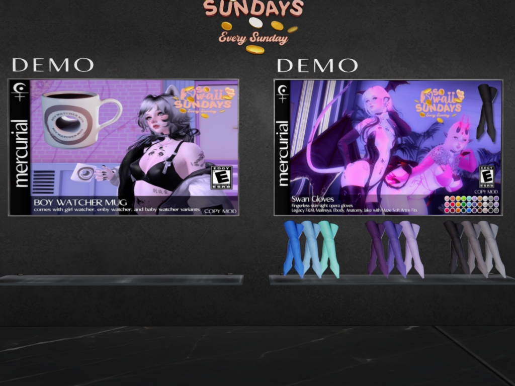Featuring: Accessories, Animations/Poses/Props, Avatar Components, Avatar Enhancements, Builds, Clothing, Cosmetics/Nails, Footwear, Hairs, Home and Garden, Shapes, Skins, Tattoos