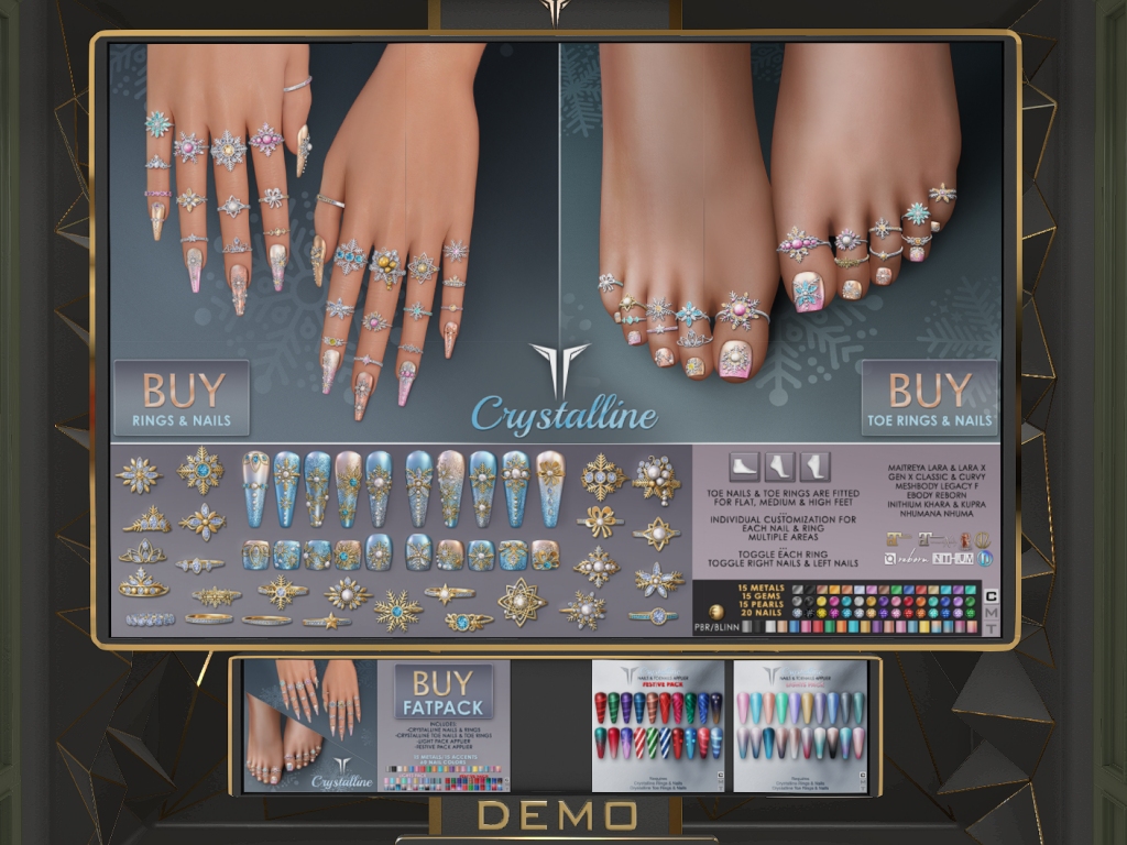 Featuring: Accessories, Animations/Poses/Props, Avatar Components, Builds, Clothing, Cosmetics/Nails, Footwear, Hairs, Home and Garden